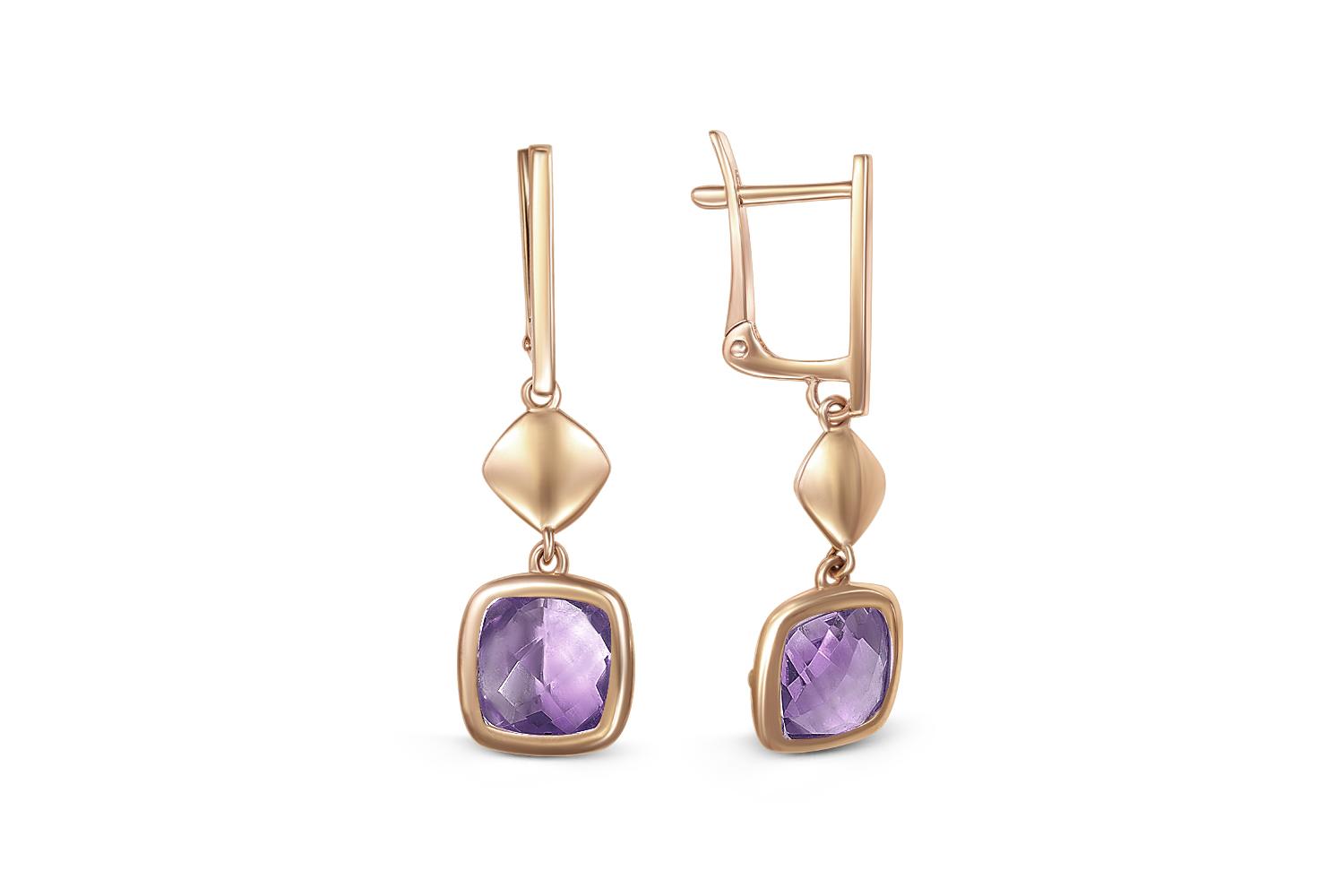 Мастера компании NEWGOLD, приложив всё свое мастерство и искусство, создали для Вас на нашем собственном производстве Серьги из красного золота с 2 аметистами.