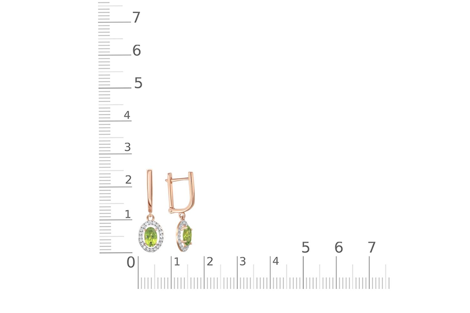 Закажите Серьги из красного золота с 2 хризолитами и 40 фианитами с получением в Москве через курьерскую службу доставки напрямую с нашего производственного склада завода NEWGOLD!