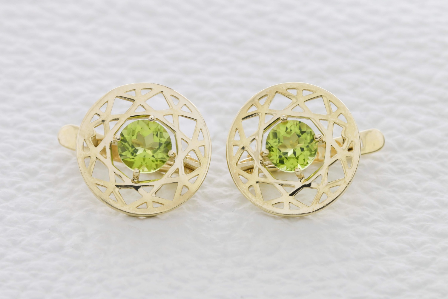 Мастера компании NEWGOLD, приложив всё свое мастерство и искусство, создали для Вас на нашем собственном производстве Серьги Круги из жёлтого золота с 2 хризолитами.