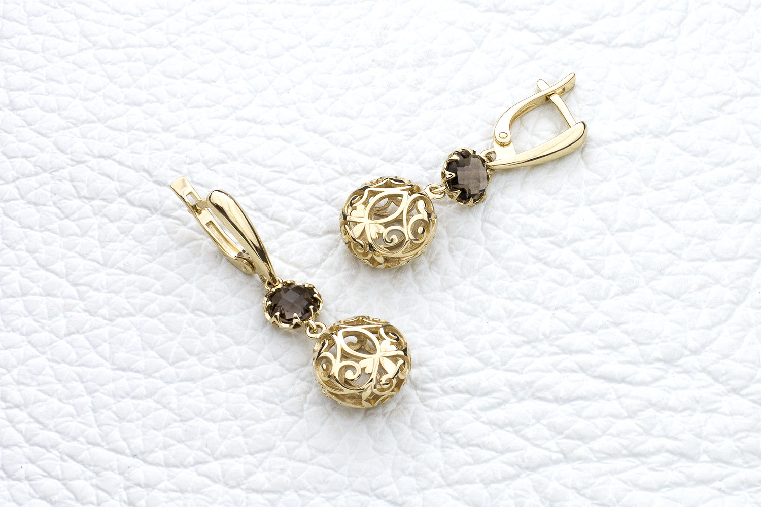 Мастера компании NEWGOLD, приложив всё свое мастерство и искусство, создали для Вас на нашем собственном производстве Серьги из жёлтого золота с 2 раухтопазами. Это изделие изысканного дизайна Вы можете приобрести в Москве с доставкой на дом. Также Вы имеете уникальную возможность заказать для себя изготовление нового эксклюзивного варианта украшения. Гарантируем высокое качество по доступной цене на весь представленный ассортимент. Хороших покупок!
