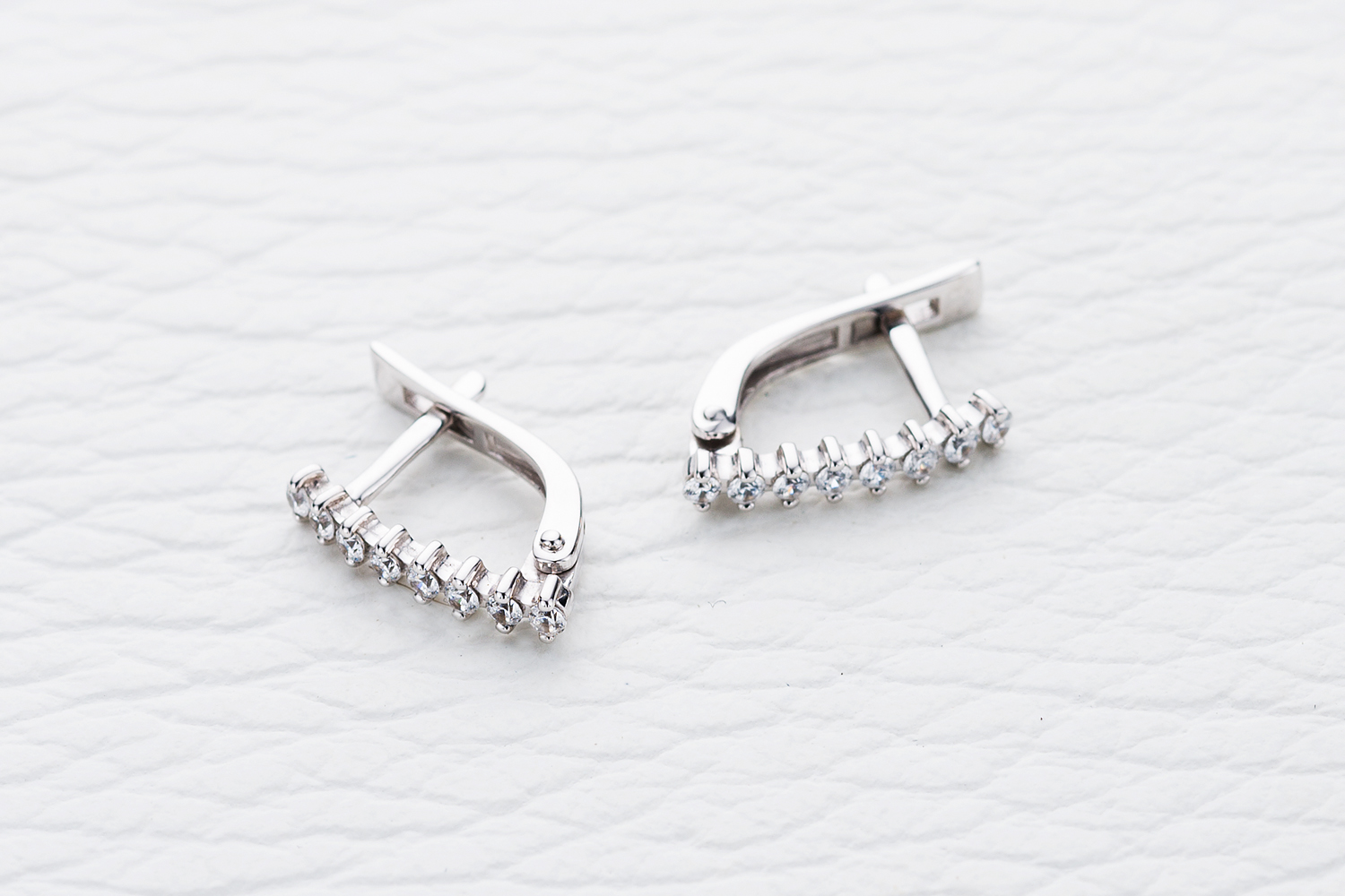 Мастера компании NEWGOLD, приложив всё свое мастерство и искусство, создали для Вас на нашем собственном производстве Серьги Дорожки из белого золота с 16 фианитами.