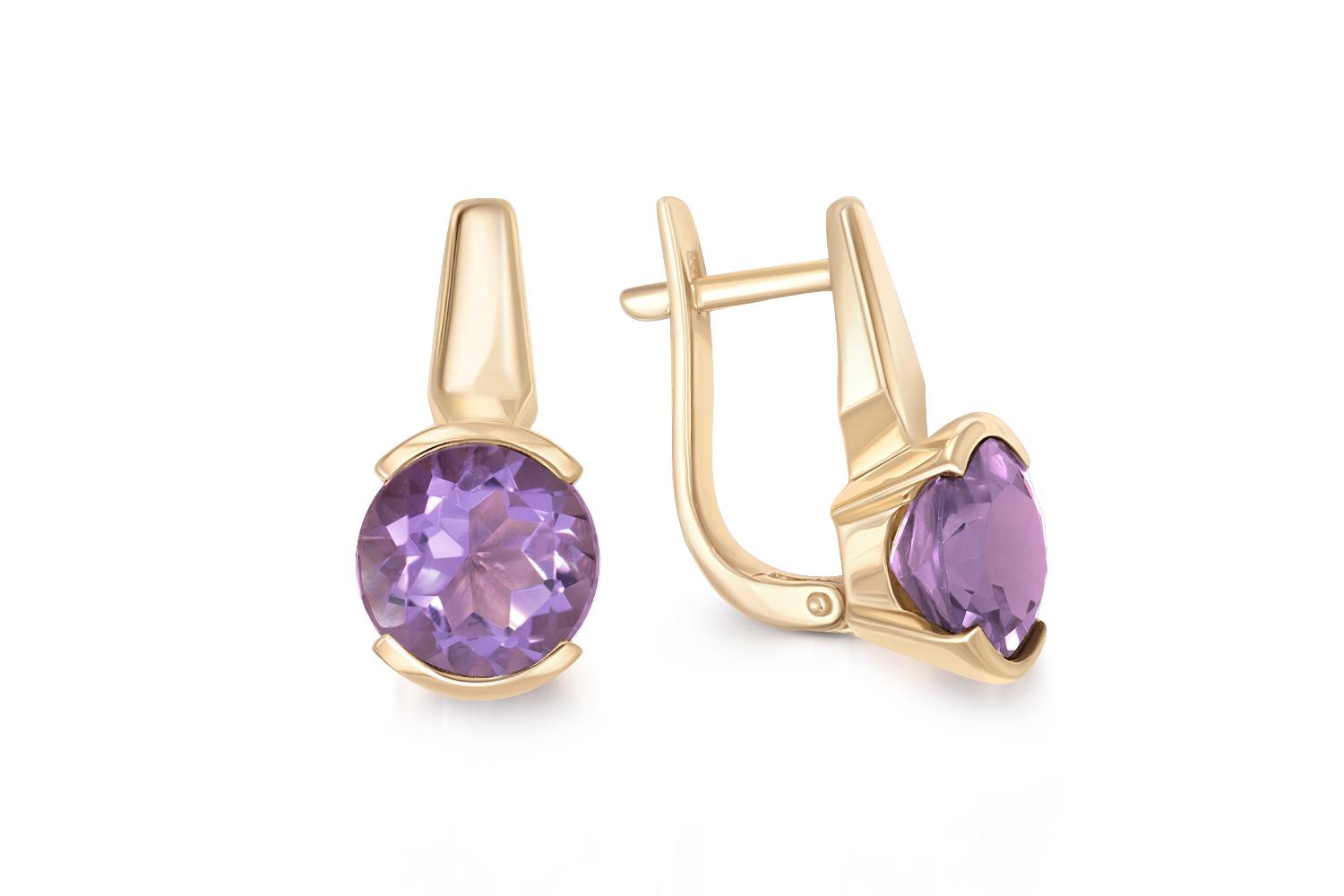 Мастера компании NEWGOLD, приложив всё свое мастерство и искусство, создали для Вас на нашем собственном производстве Серьги из жёлтого золота с 2 аметистами.