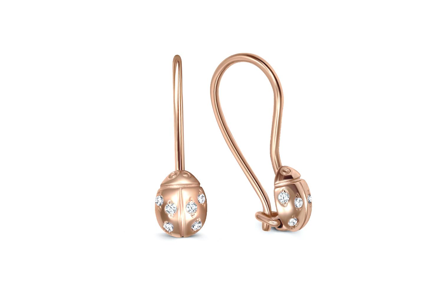 Мастера компании NEWGOLD, приложив всё свое мастерство и искусство, создали для Вас на нашем собственном производстве Детские серьги Божьи коровки из красного золота с 12 фианитами.