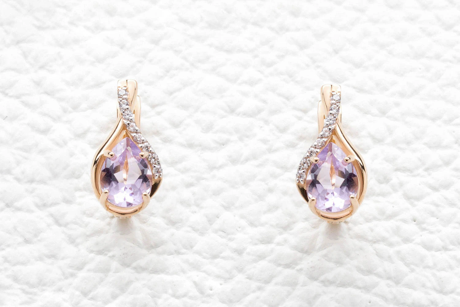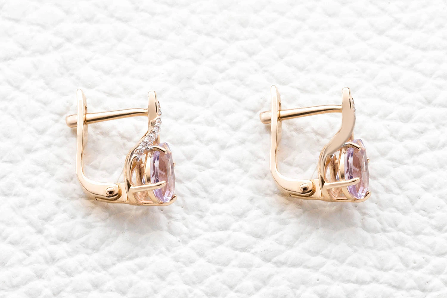 Мастера компании NEWGOLD, приложив всё свое мастерство и искусство, создали для Вас на нашем собственном производстве Серьги из красного золота с 2 аметистами и 16 фианитами.