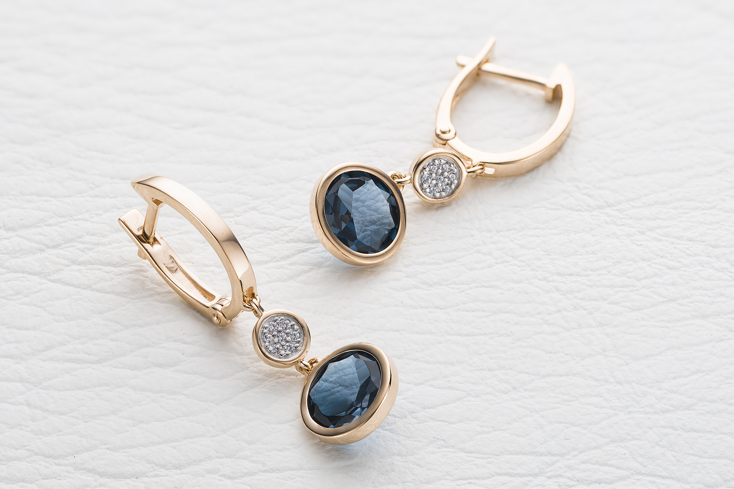Мастера компании NEWGOLD, приложив всё свое мастерство и искусство, создали для Вас на нашем собственном производстве Серьги из красного золота с 2 топазами лондон и 14 фианитами.