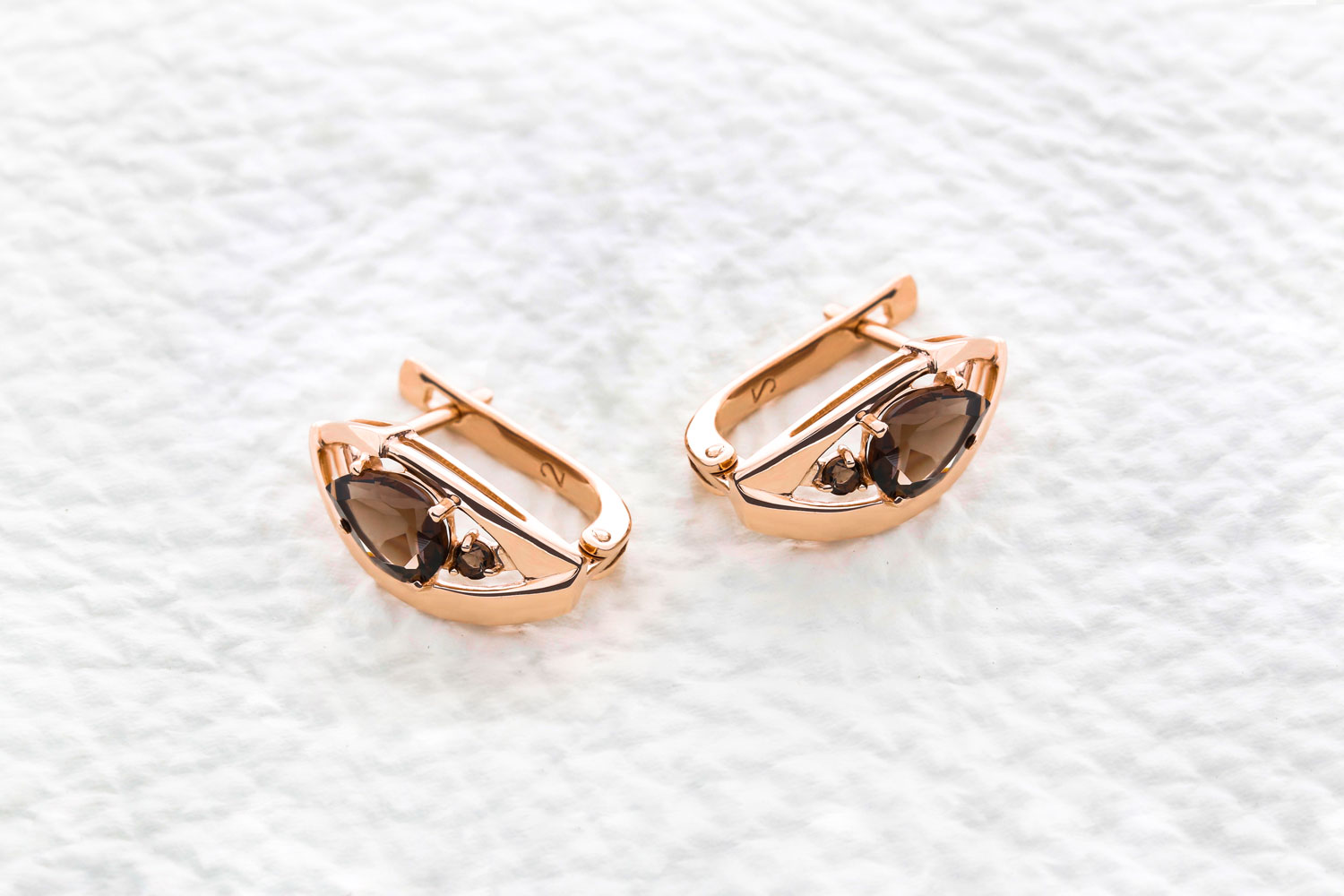 Мастера компании NEWGOLD, приложив всё свое мастерство и искусство, создали для Вас на нашем собственном производстве Серьги из красного золота с 4 раухтопазами.