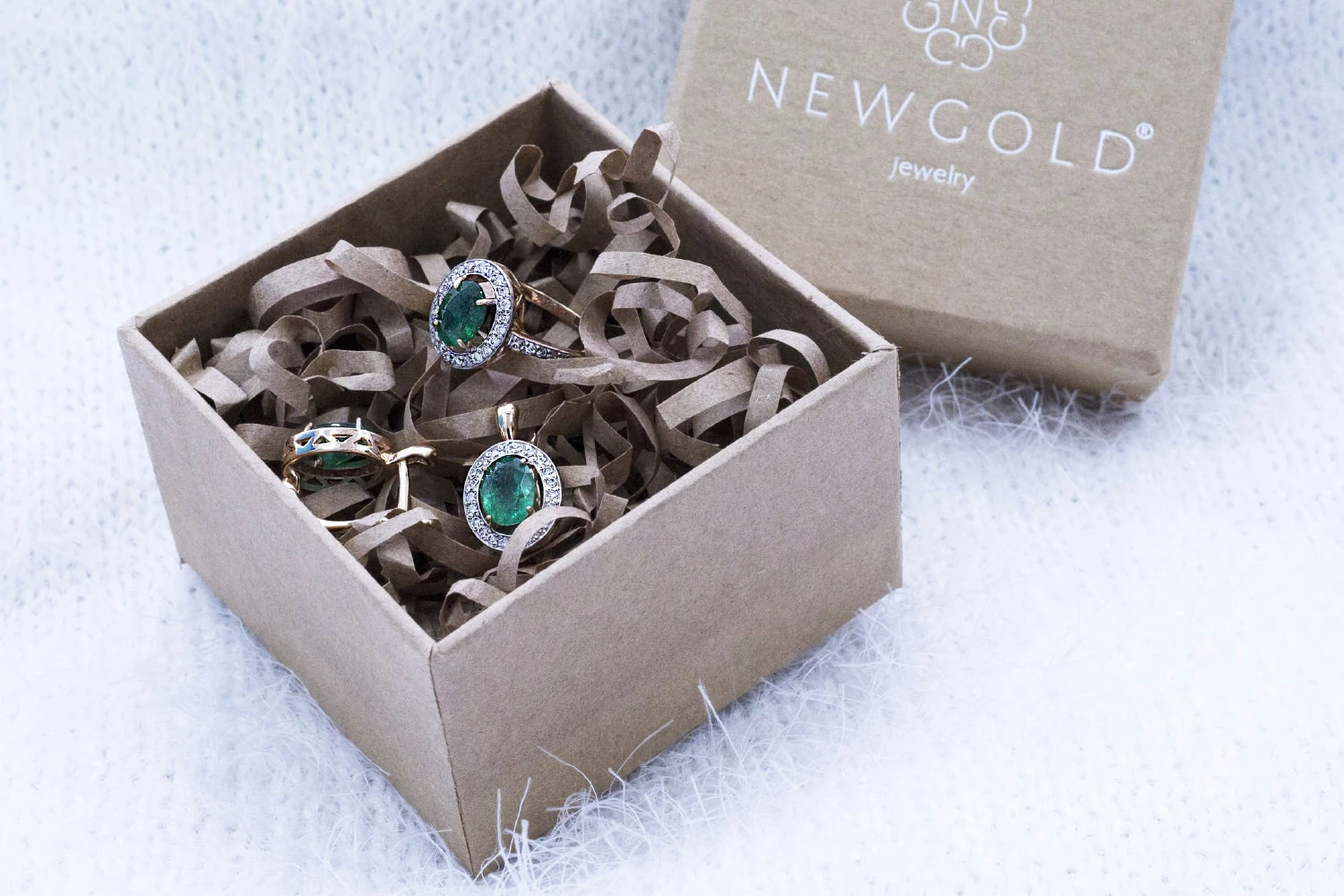 Мастера компании NEWGOLD, приложив всё свое мастерство и искусство, создали для Вас на нашем собственном производстве Серьги из красного золота с 2 изумрудами и 44 бриллиантами.