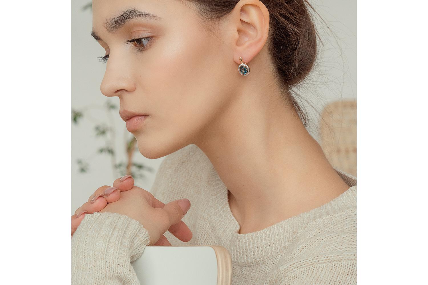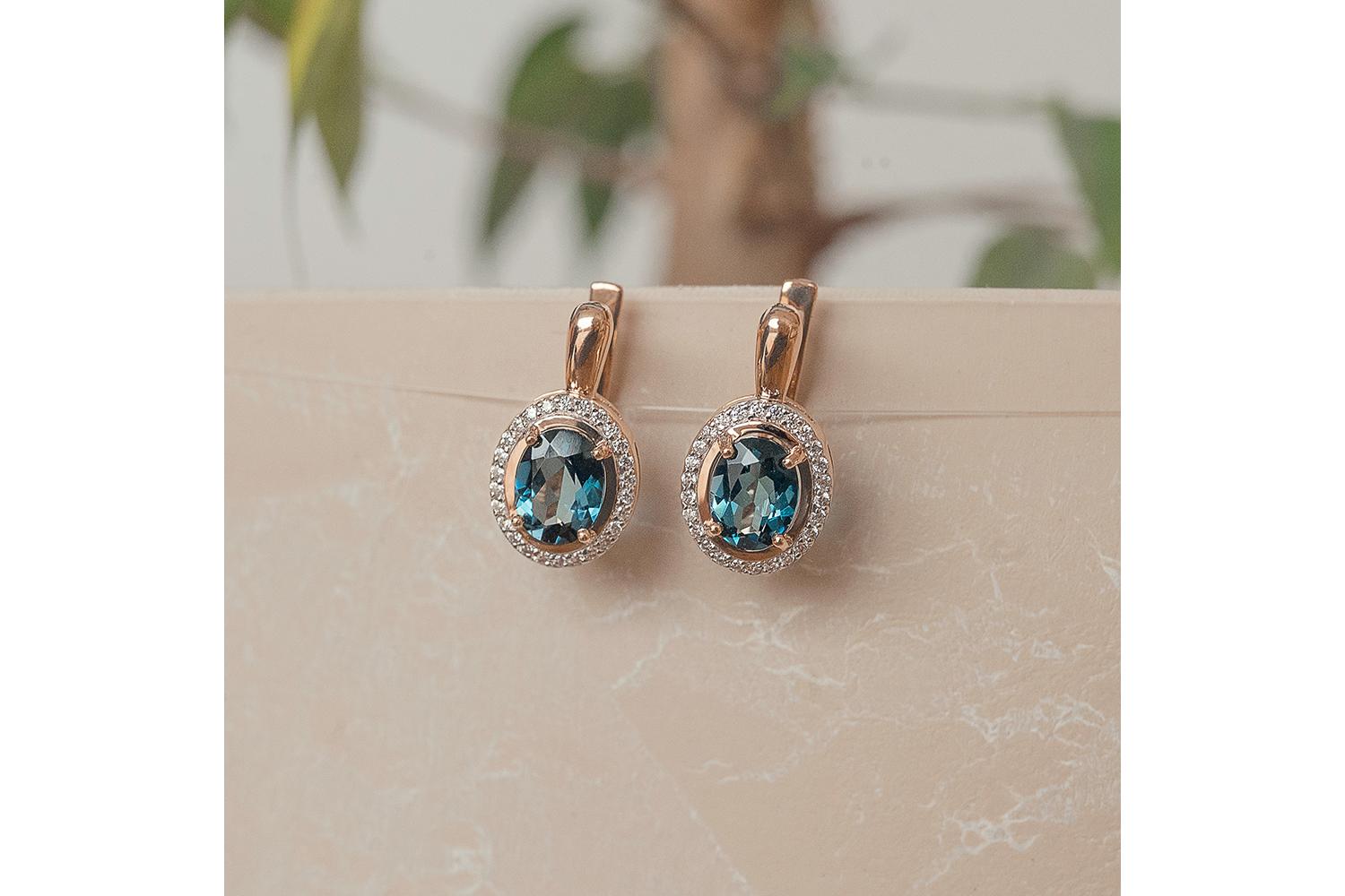 Мастера компании NEWGOLD, приложив всё свое мастерство и искусство, создали для Вас на нашем собственном производстве Серьги из красного золота с 2 топазами лондон и 52 фианитами.