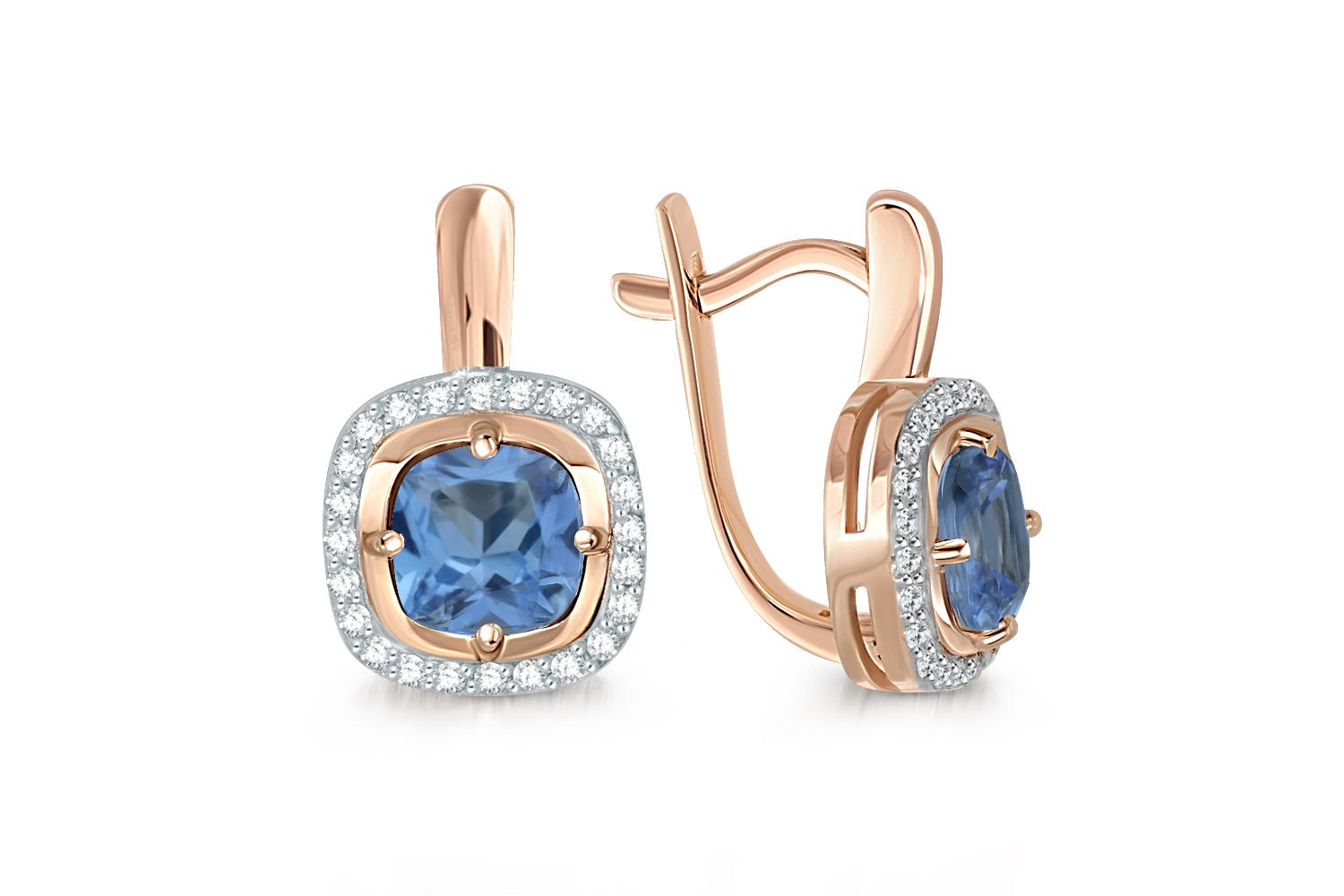 Мастера компании NEWGOLD, приложив всё свое мастерство и искусство, создали для Вас на нашем собственном производстве Серьги из красного золота с 2 топазами лондон и 48 фианитами.