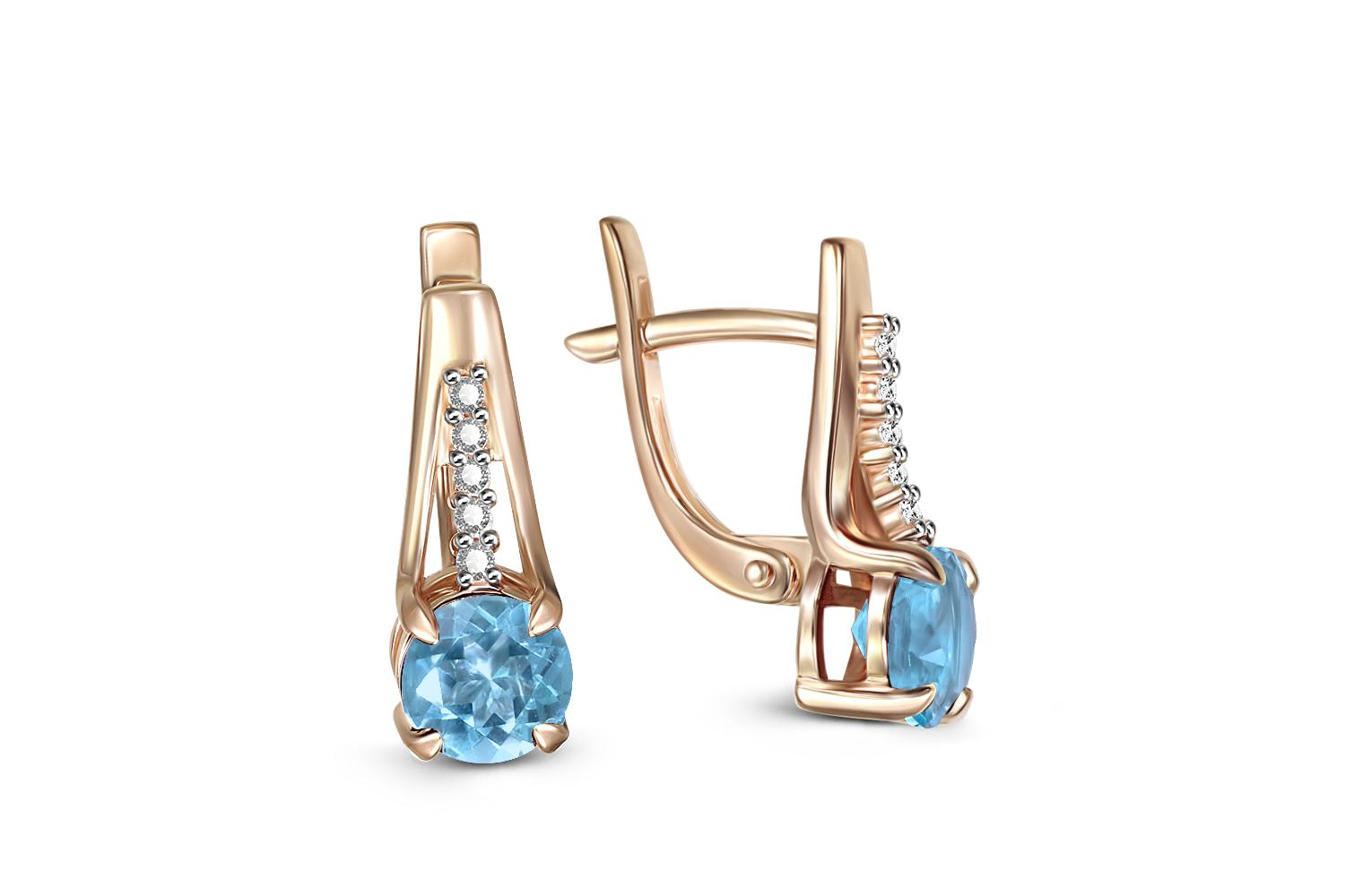 Закажите Серьги из красного золота с 2 топазами swiss и 10 фианитами с получением в Москве через курьерскую службу доставки напрямую с нашего производственного склада завода NEWGOLD!