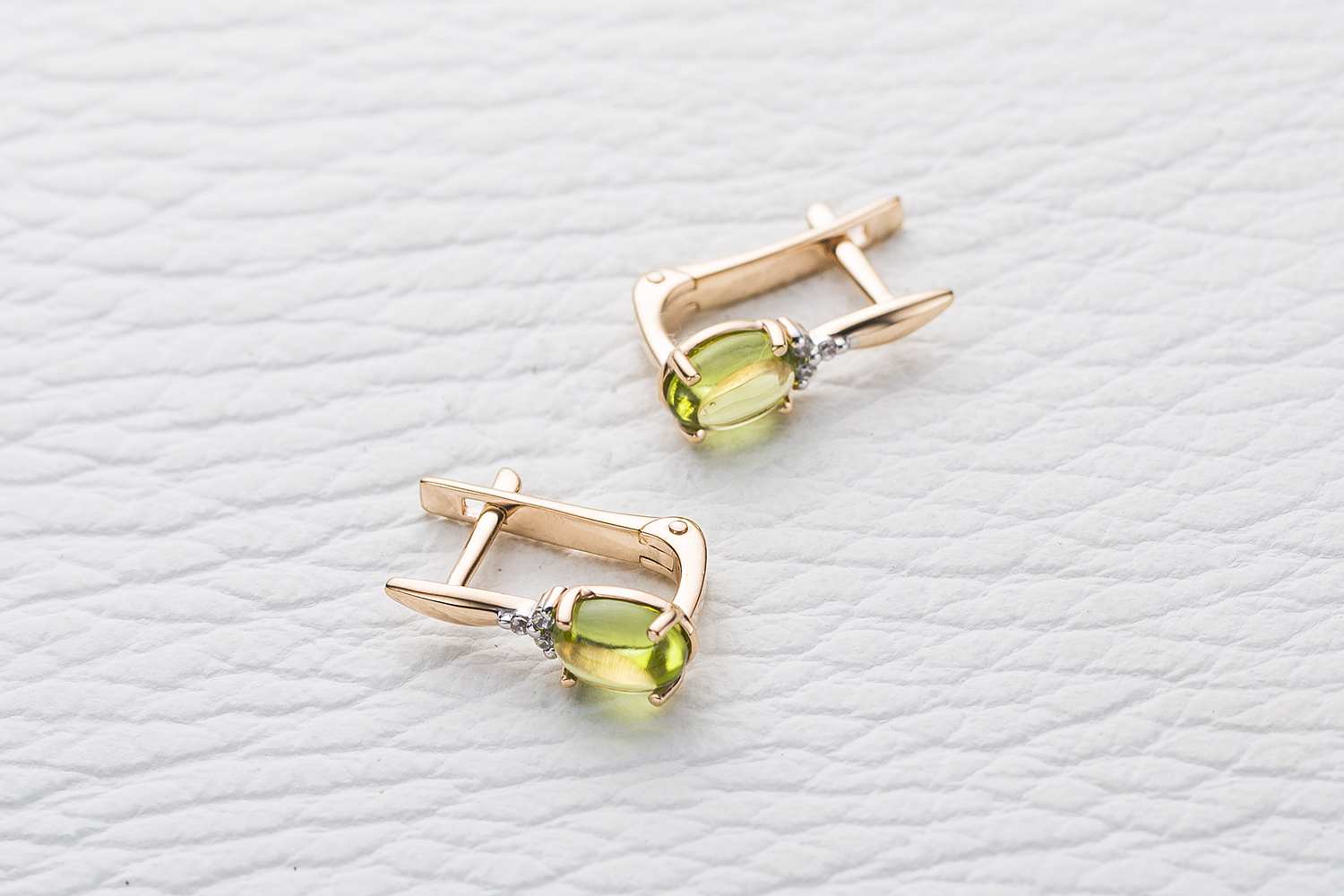 Хризолит натуральный, количество 2 шт., огранка овал-кабошон, размер 6ˣ4 ; Фианит б/цв, количество 6 шт., огранка круг, размер 1 мм
