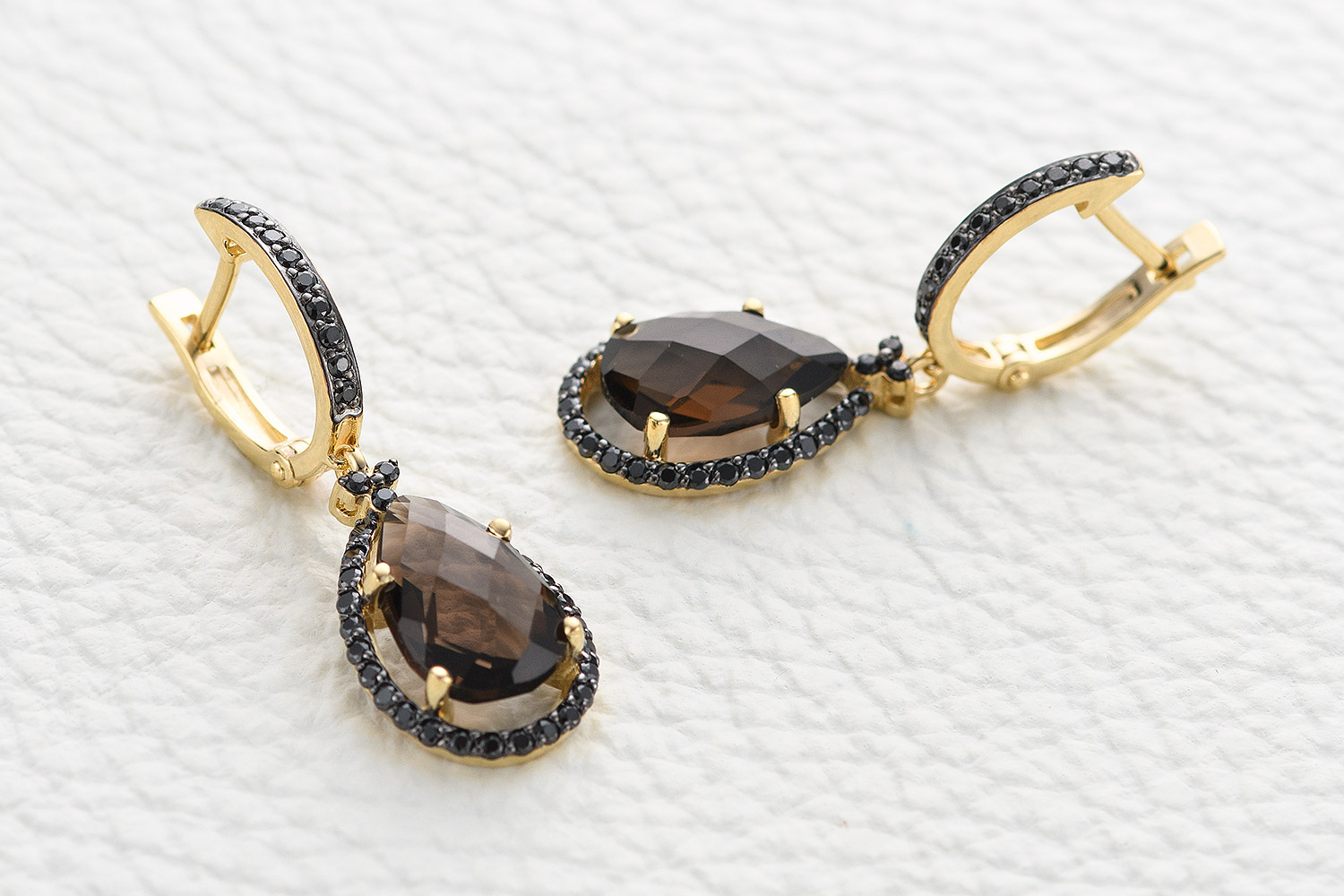 Мастера компании NEWGOLD, приложив всё свое мастерство и искусство, создали для Вас на нашем собственном производстве Серьги из жёлтого золота с 2 раухтопазами и 78 фианитами.