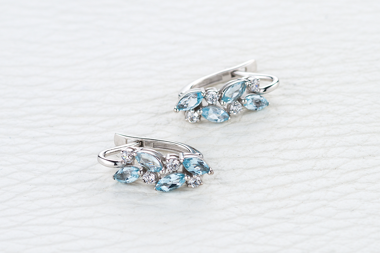 Топаз Sky натуральный, количество 8 шт., огранка маркиз, размер 5ˣ2,5 ; Фианит б/цв, количество 8 шт., огранка круг, размер 2 мм