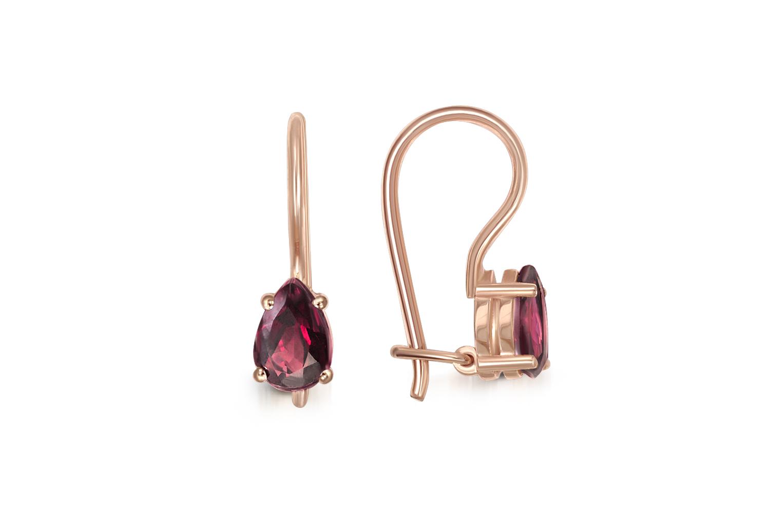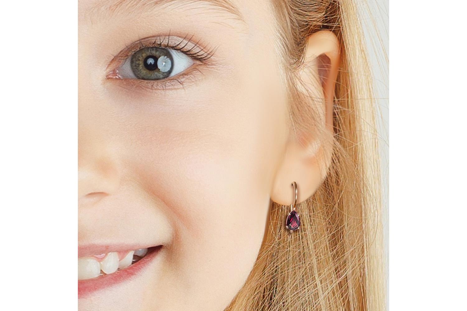 Мастера компании NEWGOLD, приложив всё свое мастерство и искусство, создали для Вас на нашем собственном производстве Детские серьги из красного золота с 2 родолитами.