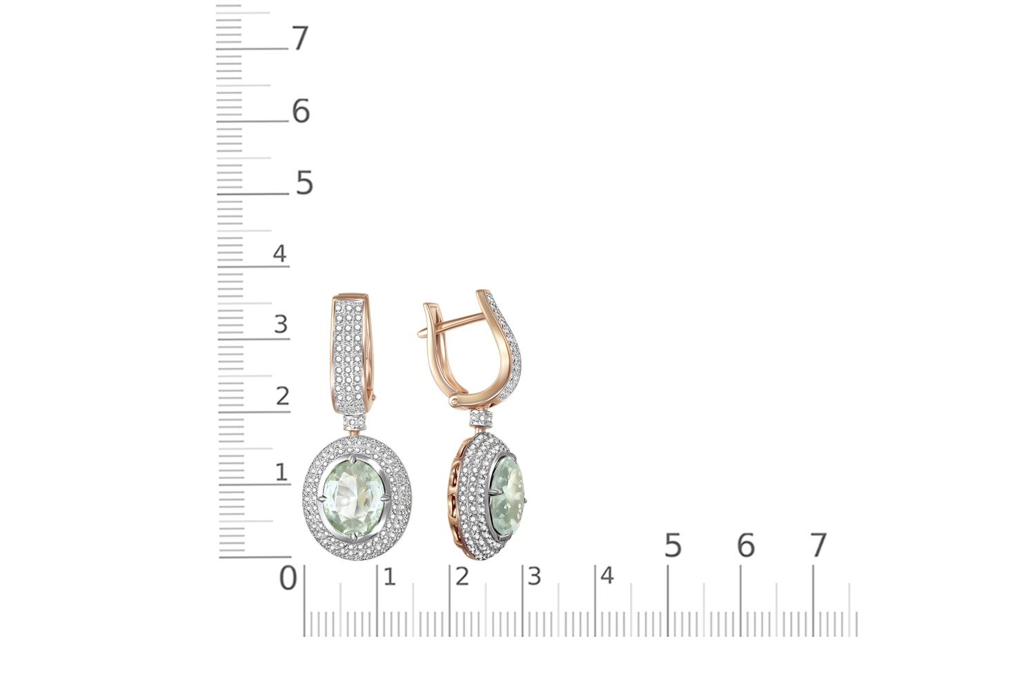 Аметист зеленый натуральный, количество 2 шт., огранка овал, размер 10ˣ8 ; Фианит б/цв, количество 290 шт., огранка круг, размер 1 мм