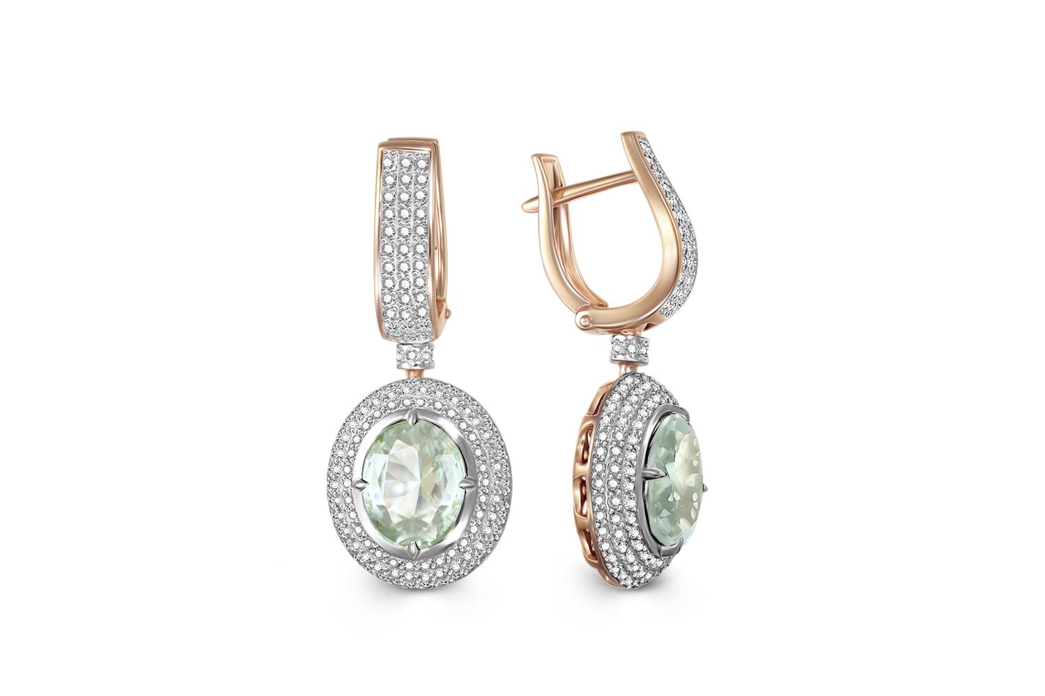 Мастера компании NEWGOLD, приложив всё свое мастерство и искусство, создали для Вас на нашем собственном производстве Серьги из красного золота с 2 аметистами и 290 фианитами.