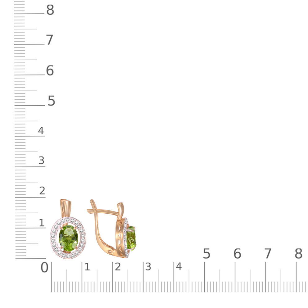 Закажите Серьги из красного золота с 2 хризолитами и 44 фианитами с получением в Москве через курьерскую службу доставки напрямую с нашего производственного склада завода NEWGOLD!