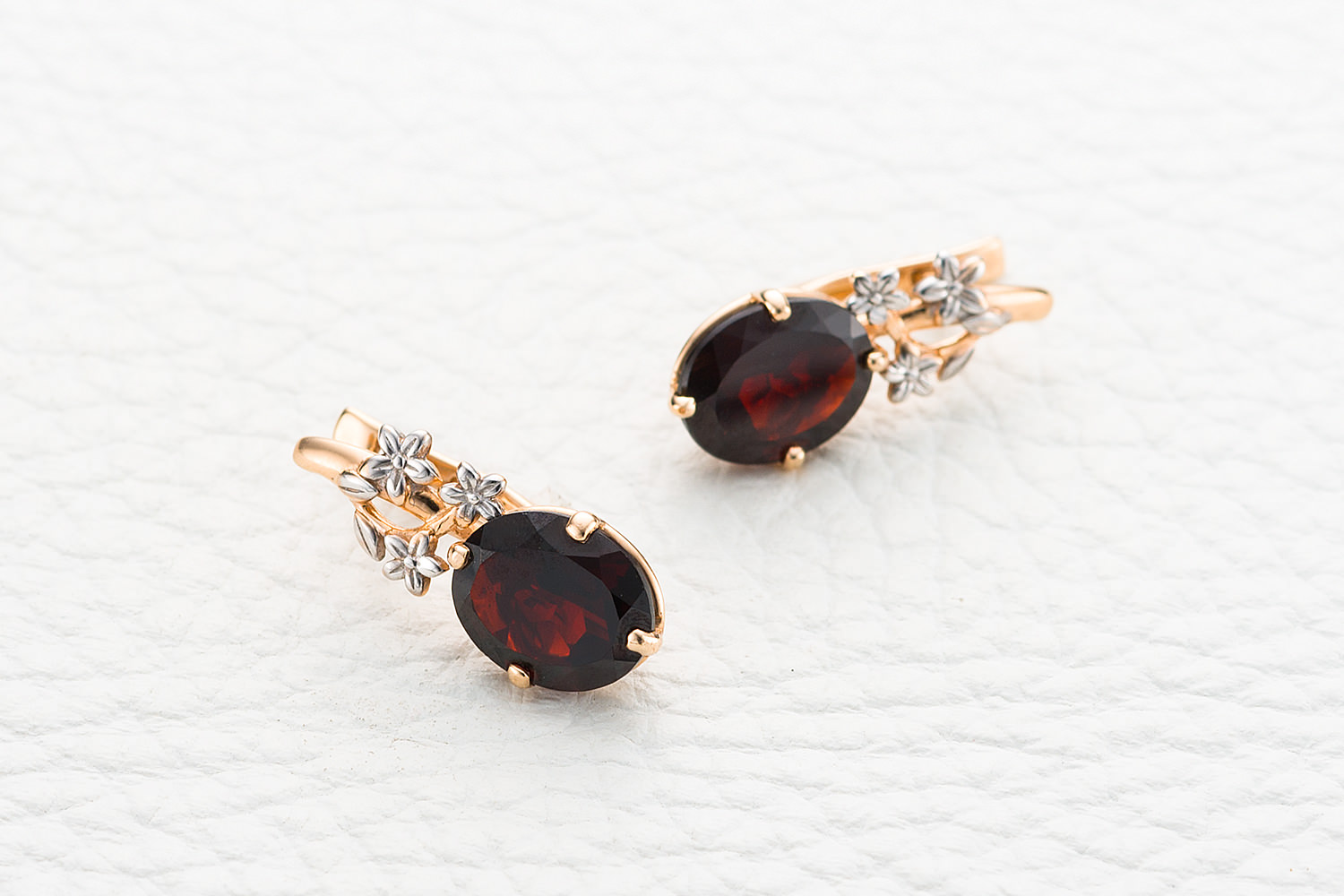 Мастера компании NEWGOLD, приложив всё свое мастерство и искусство, создали для Вас на нашем собственном производстве Серьги Цветы из красного золота с 2 гранатами.