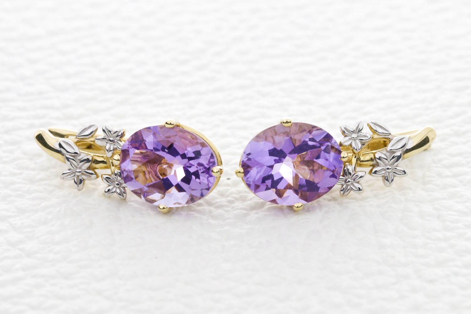 Мастера компании NEWGOLD, приложив всё свое мастерство и искусство, создали для Вас на нашем собственном производстве Серьги Цветы из жёлтого золота с 2 аметистами.