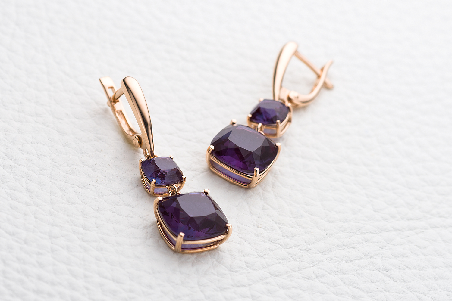 Мастера компании NEWGOLD, приложив всё свое мастерство и искусство, создали для Вас на нашем собственном производстве Серьги из красного золота с 4 александритами.