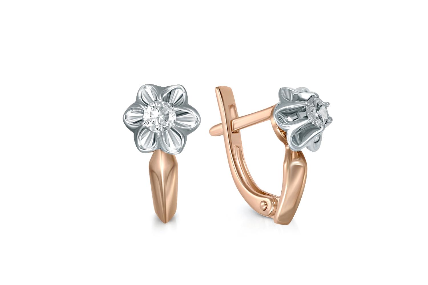 Закажите Серьги Цветы из красного золота с 2 бриллиантами с получением в Москве через курьерскую службу доставки напрямую с нашего производственного склада завода NEWGOLD!