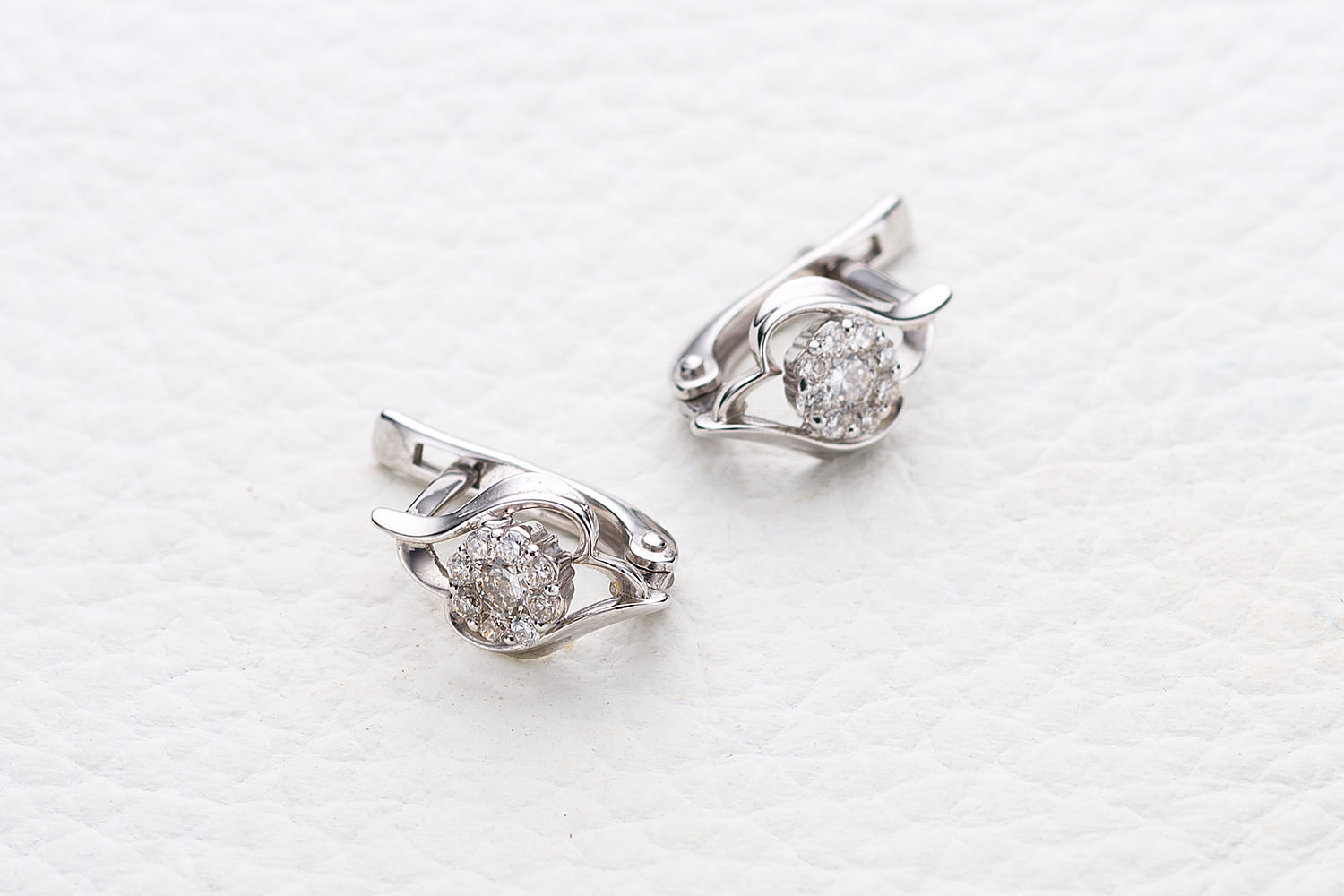 Мастера компании NEWGOLD, приложив всё свое мастерство и искусство, создали для Вас на нашем собственном производстве Серьги Цветы из белого золота с 18 бриллиантами.