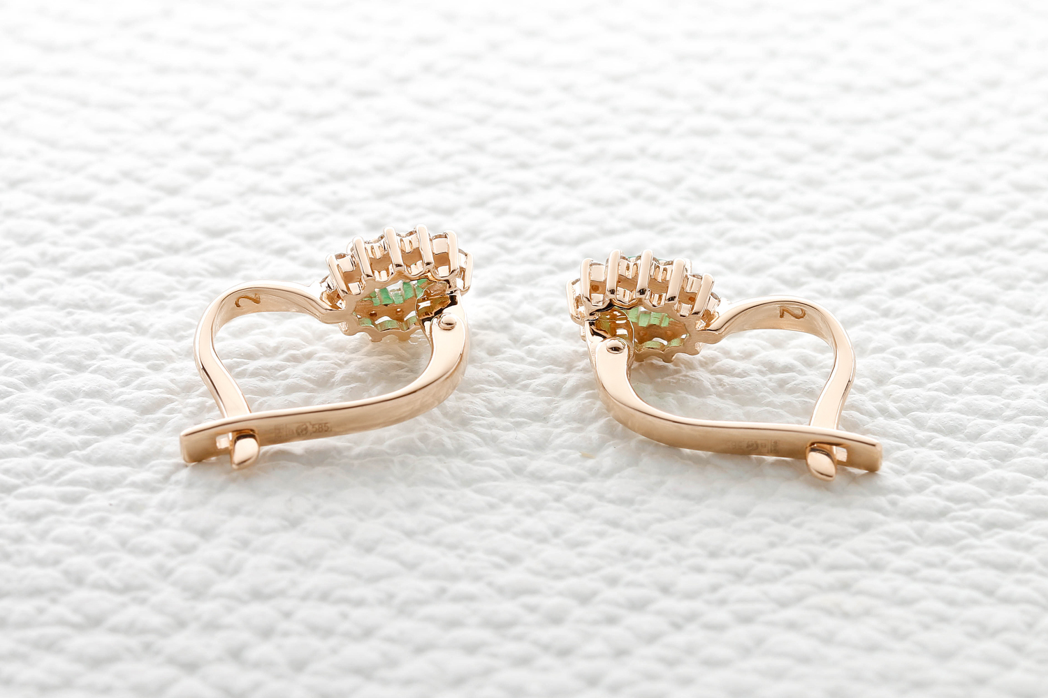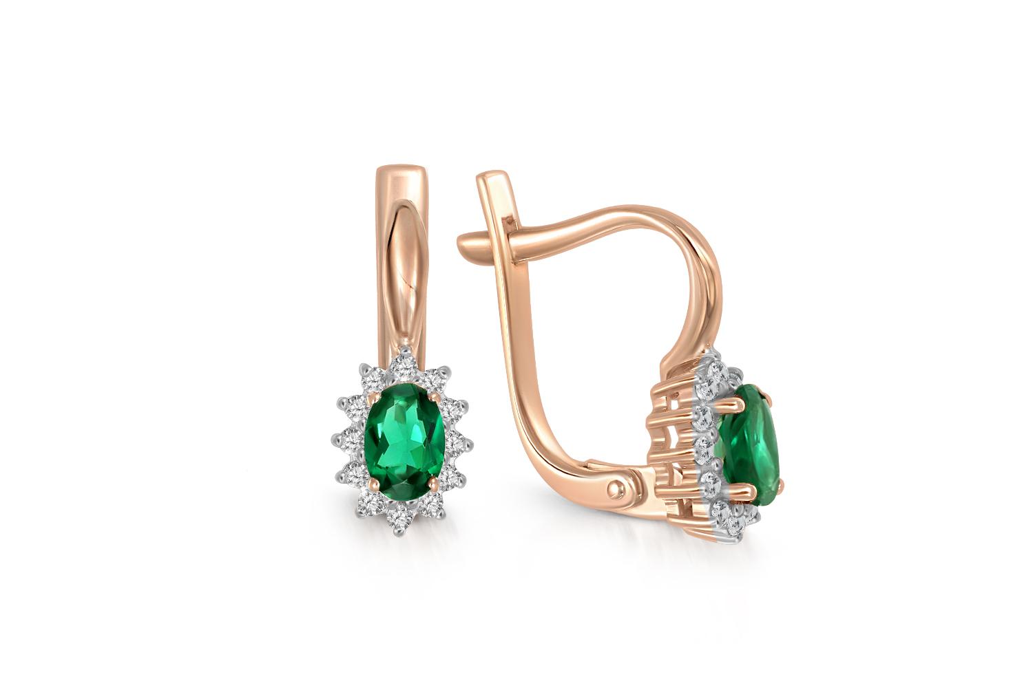 Мастера компании NEWGOLD, приложив всё свое мастерство и искусство, создали для Вас на нашем собственном производстве Серьги из красного золота с 2 изумрудами и 24 бриллиантами.