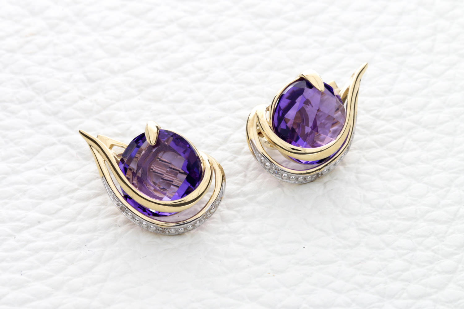 Аметист натуральный, количество 2 шт., огранка круг-бриолет, размер 10 мм ; Фианит б/цв, количество 6 шт., огранка круг, размер 1 мм