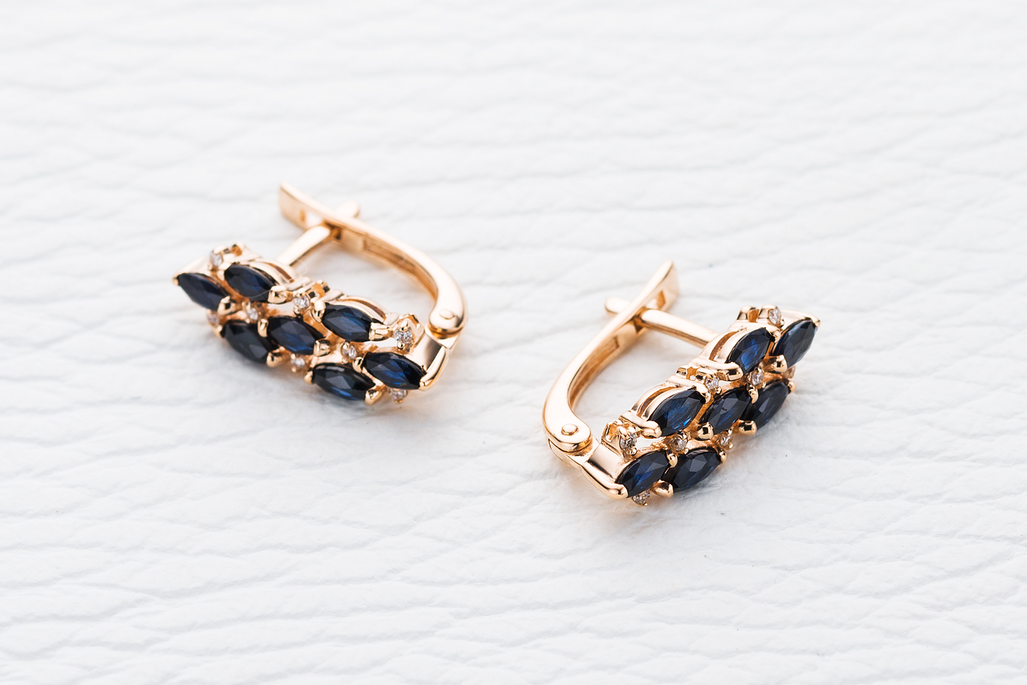 Мастера компании NEWGOLD, приложив всё свое мастерство и искусство, создали для Вас на нашем собственном производстве Серьги из красного золота с 14 сапфирами и 16 бриллиантами.