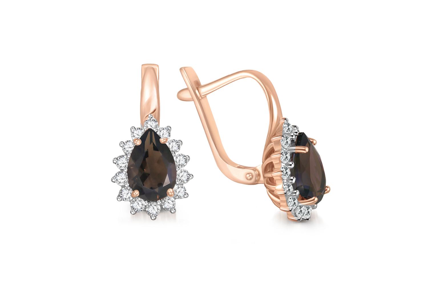 Мастера компании NEWGOLD, приложив всё свое мастерство и искусство, создали для Вас на нашем собственном производстве Серьги из красного золота с 2 раухтопазами и 28 фианитами.