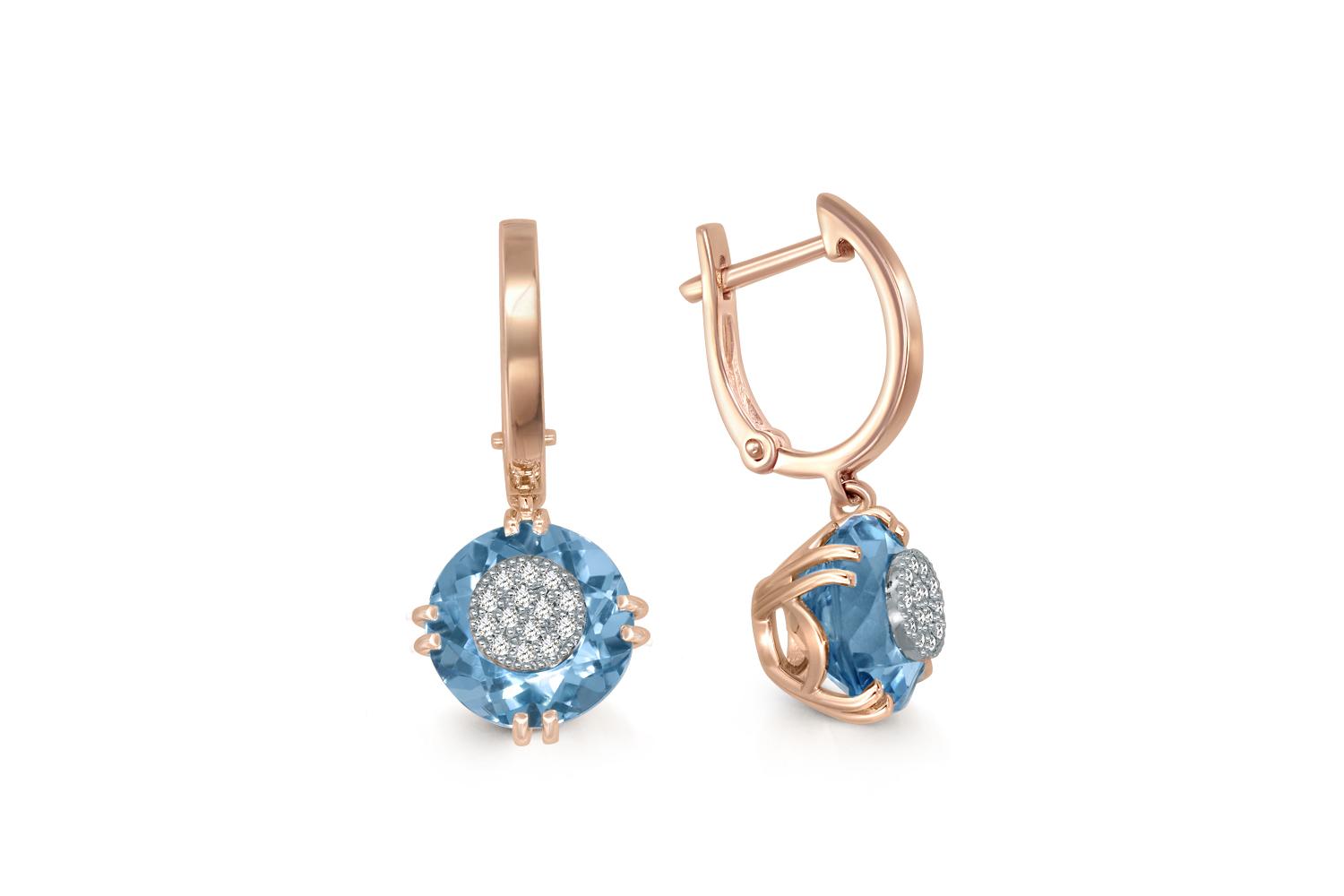 Мастера компании NEWGOLD, приложив всё свое мастерство и искусство, создали для Вас на нашем собственном производстве Серьги из красного золота с 2 топазами swiss и 28 бриллиантами.