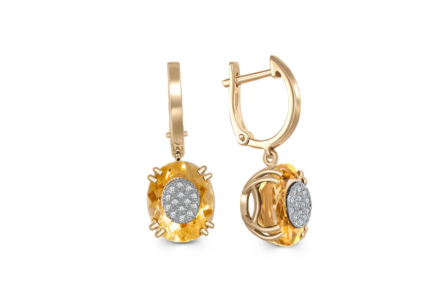 Мастера компании NEWGOLD, приложив всё свое мастерство и искусство, создали для Вас на нашем собственном производстве Серьги из жёлтого золота с 2 цитринами и 28 бриллиантами.