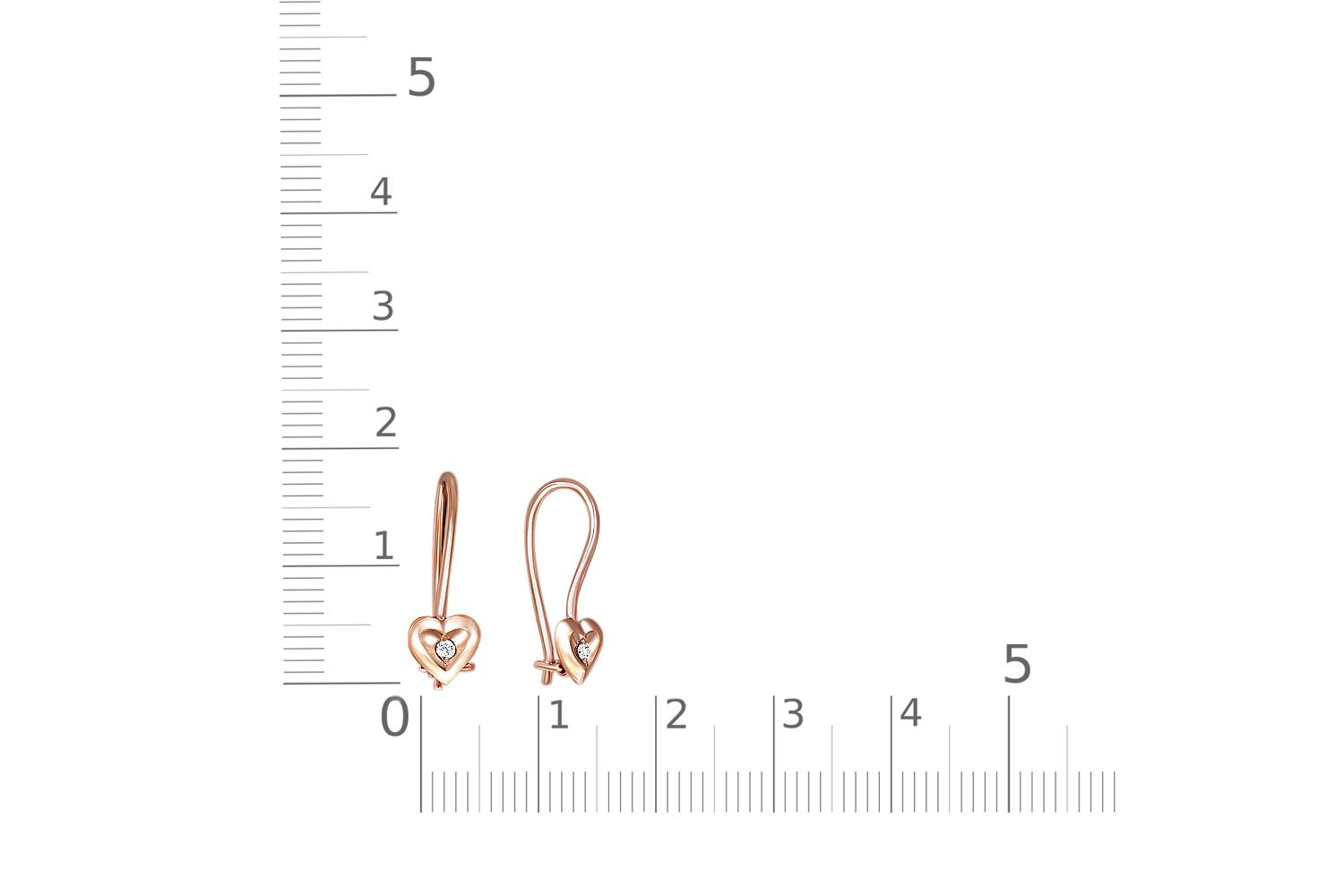 Закажите Детские серьги Сердца из красного золота с 2 фианитами с получением в Москве через курьерскую службу доставки напрямую с нашего производственного склада завода NEWGOLD!