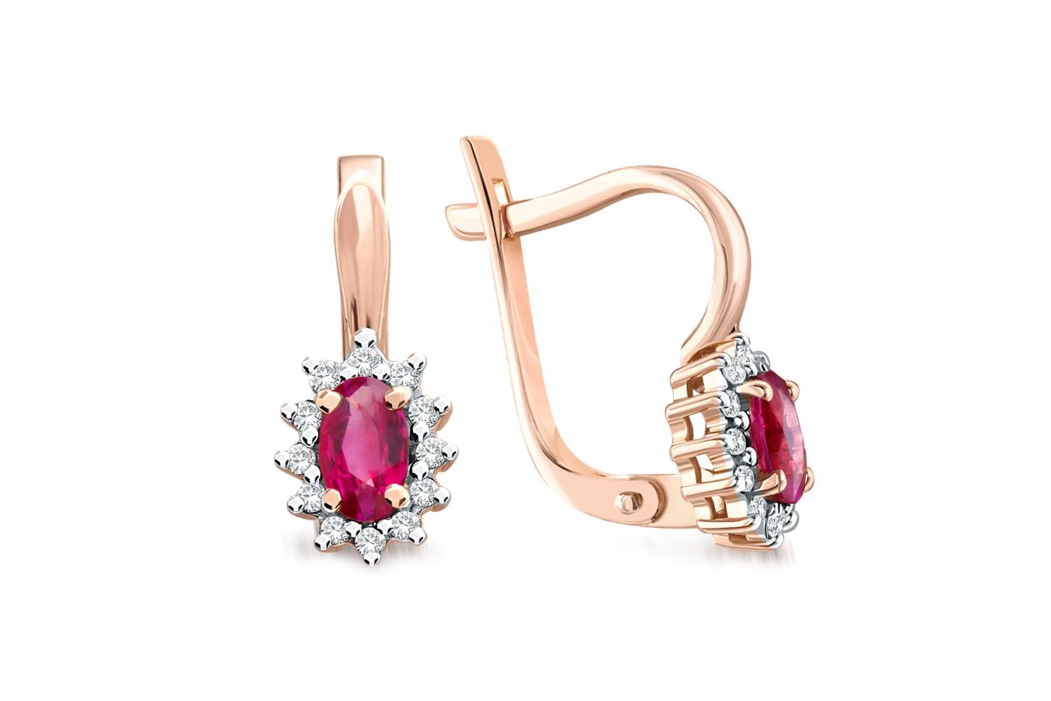 Мастера компании NEWGOLD, приложив всё свое мастерство и искусство, создали для Вас на нашем собственном производстве Серьги из красного золота с 2 рубинами и 24 бриллиантами.