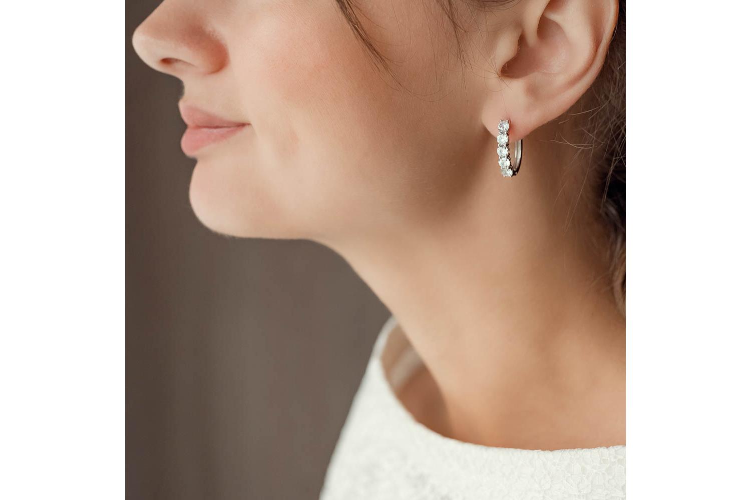 Мастера компании NEWGOLD, приложив всё свое мастерство и искусство, создали для Вас на нашем собственном производстве Серьги Дорожки из белого золота с 10 фианитами.