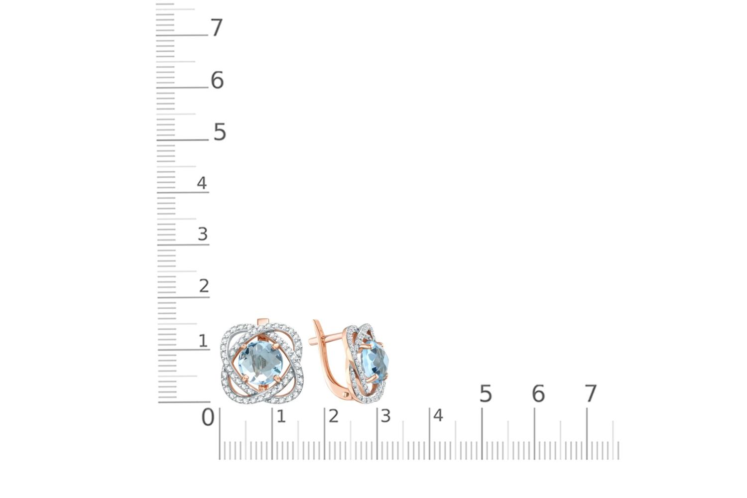Мастера компании NEWGOLD, приложив всё свое мастерство и искусство, создали для Вас на нашем собственном производстве Серьги из красного золота с 2 топазами sky и 104 фианитами.