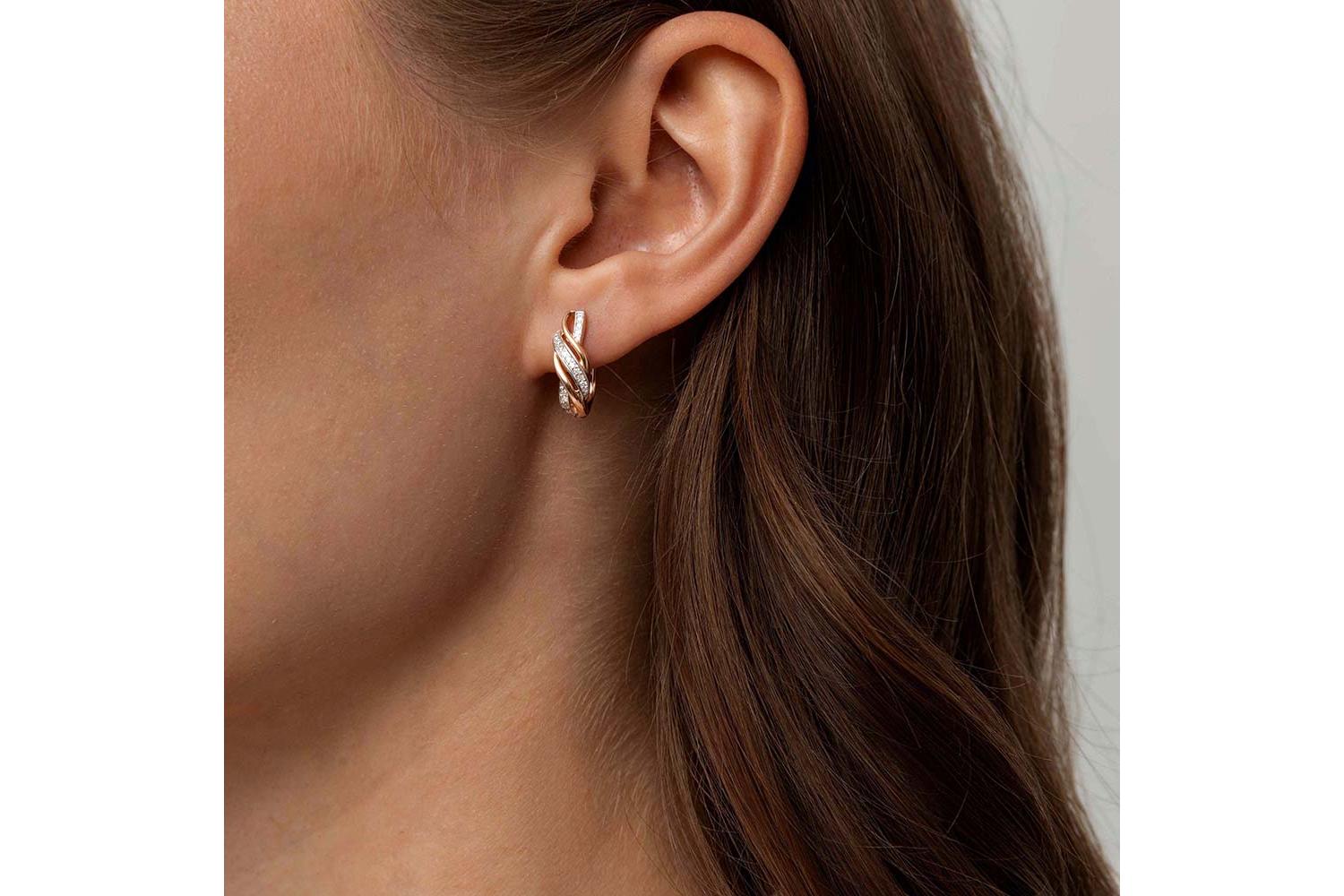 Мастера компании NEWGOLD, приложив всё свое мастерство и искусство, создали для Вас на нашем собственном производстве Серьги из красного золота с 34 фианитами.