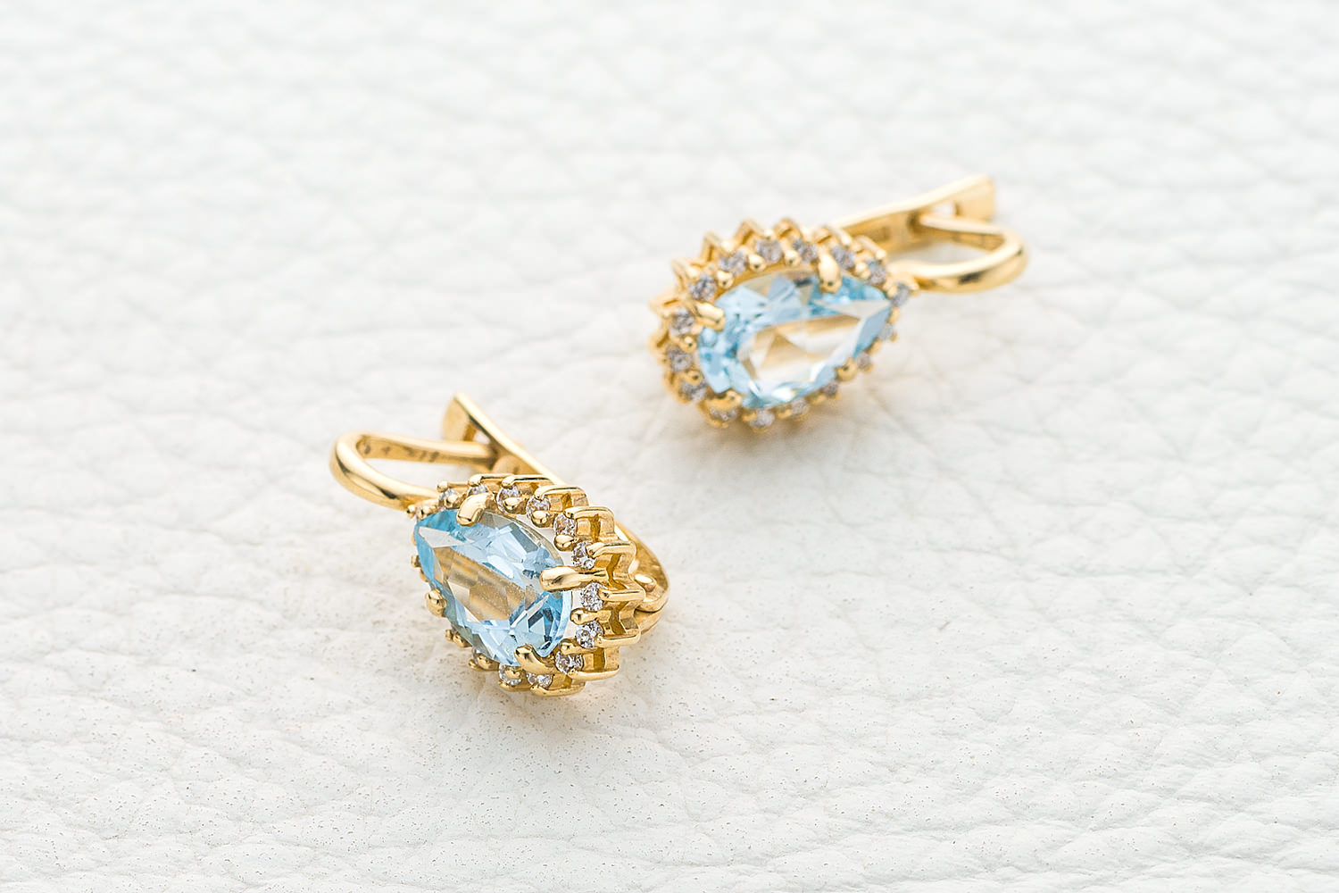 Мастера компании NEWGOLD, приложив всё свое мастерство и искусство, создали для Вас на нашем собственном производстве Серьги из жёлтого золота с 2 топазами sky и 32 фианитами.
