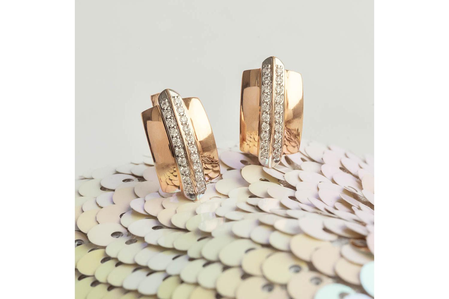 Мастера компании NEWGOLD, приложив всё свое мастерство и искусство, создали для Вас на нашем собственном производстве Серьги из красного золота с 40 фианитами.