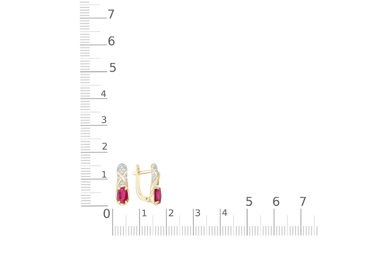 Рубин натуральный, количество 2 шт., огранка овал, размер 6ˣ4, цвет 2, чистота 2 ; Бриллиант, количество 14 шт., огранка Кр-17, размер 1 мм, цвет 2, чистота 2