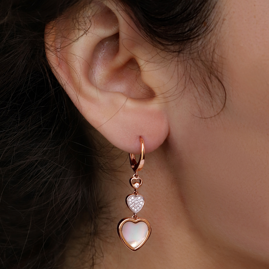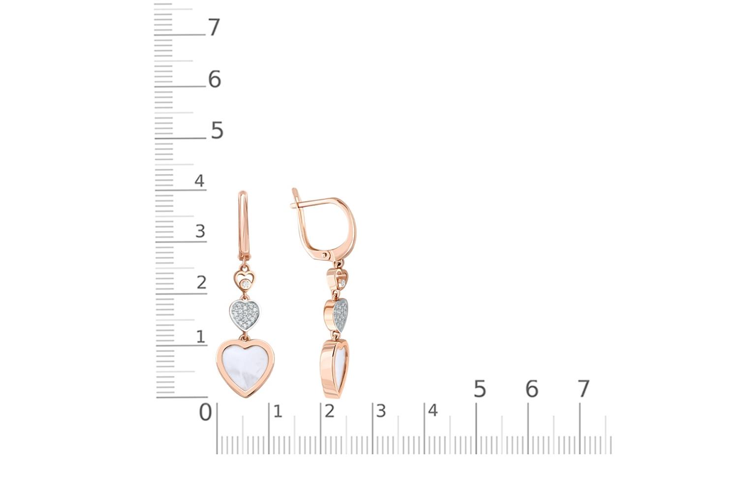 Мастера компании NEWGOLD, приложив всё свое мастерство и искусство, создали для Вас на нашем собственном производстве Серьги Сердца из красного золота с перламутром и 38 фианитами.