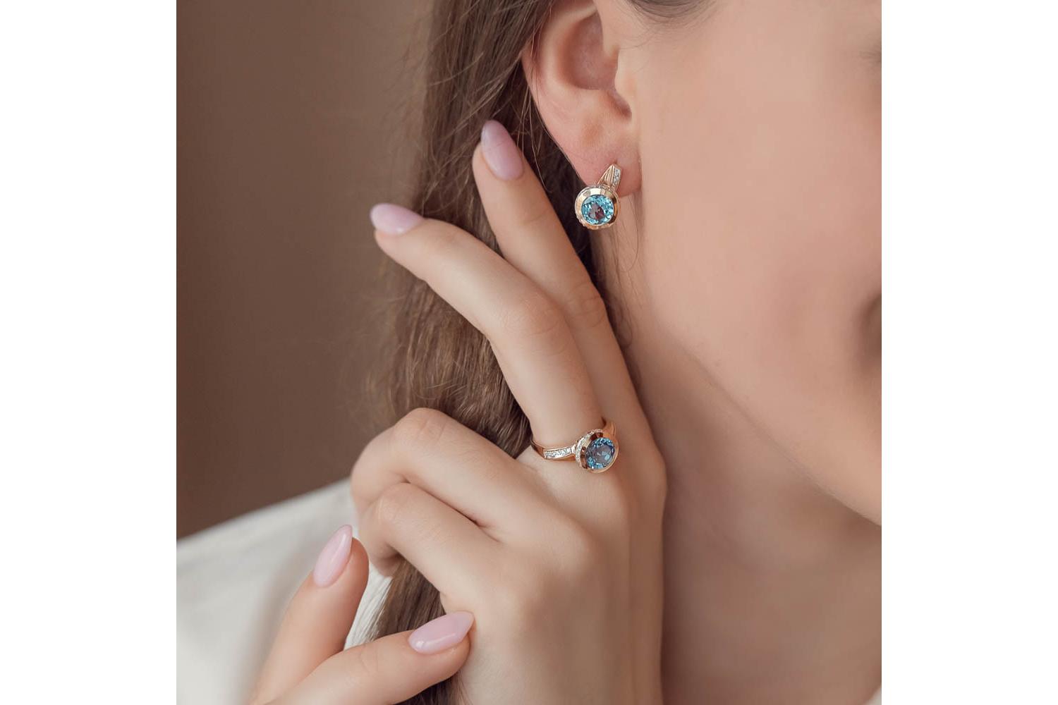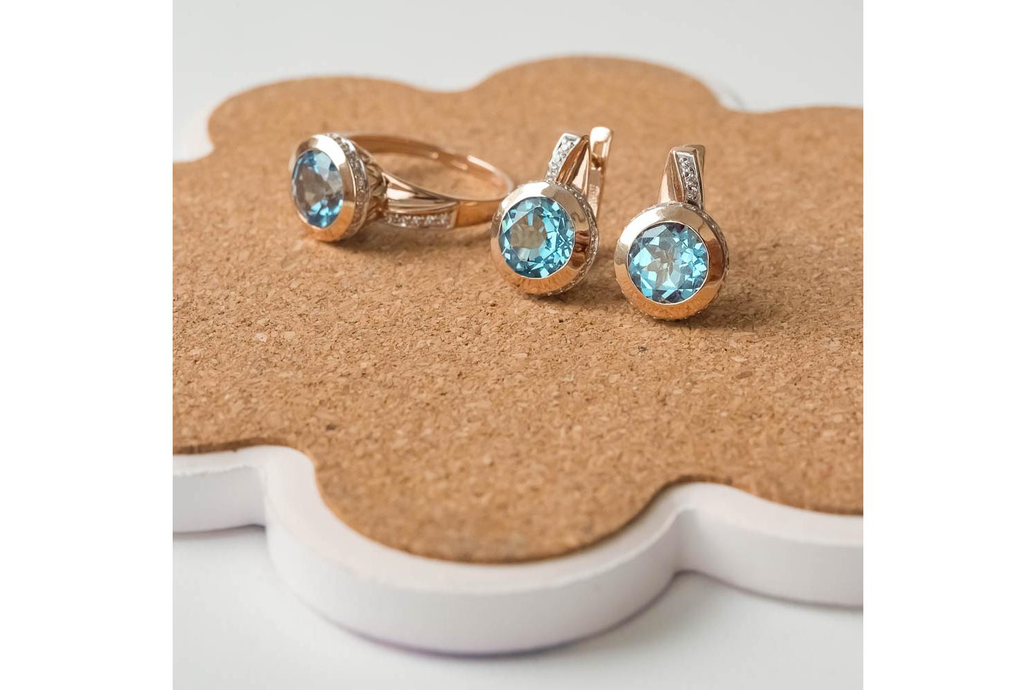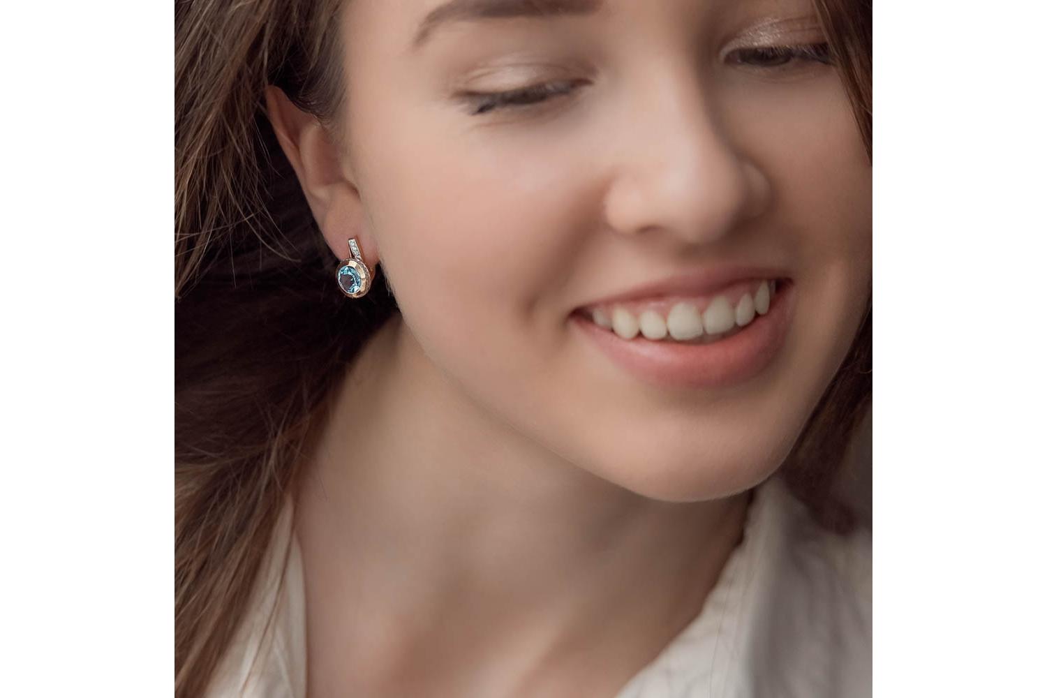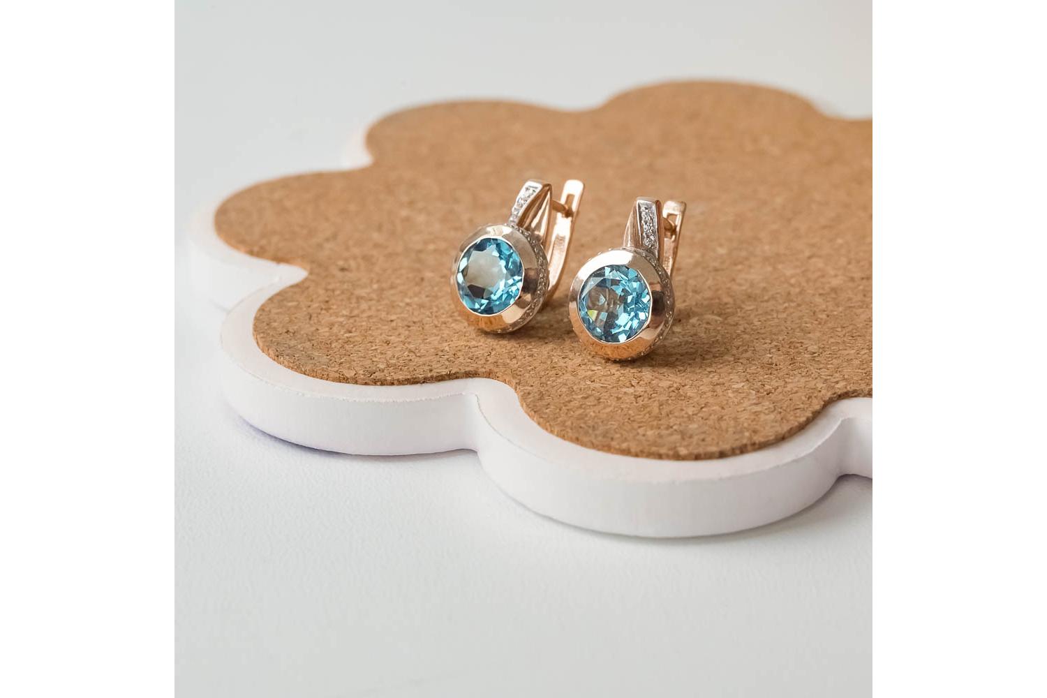 Мастера компании NEWGOLD, приложив всё свое мастерство и искусство, создали для Вас на нашем собственном производстве Серьги из красного золота с 2 топазами swiss и 58 фианитами.
