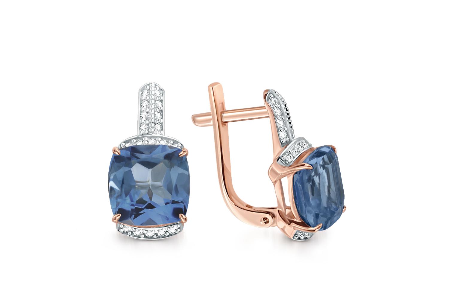 Мастера компании NEWGOLD, приложив всё свое мастерство и искусство, создали для Вас на нашем собственном производстве Серьги из красного золота с 2 ситаллами и 36 фианитами.