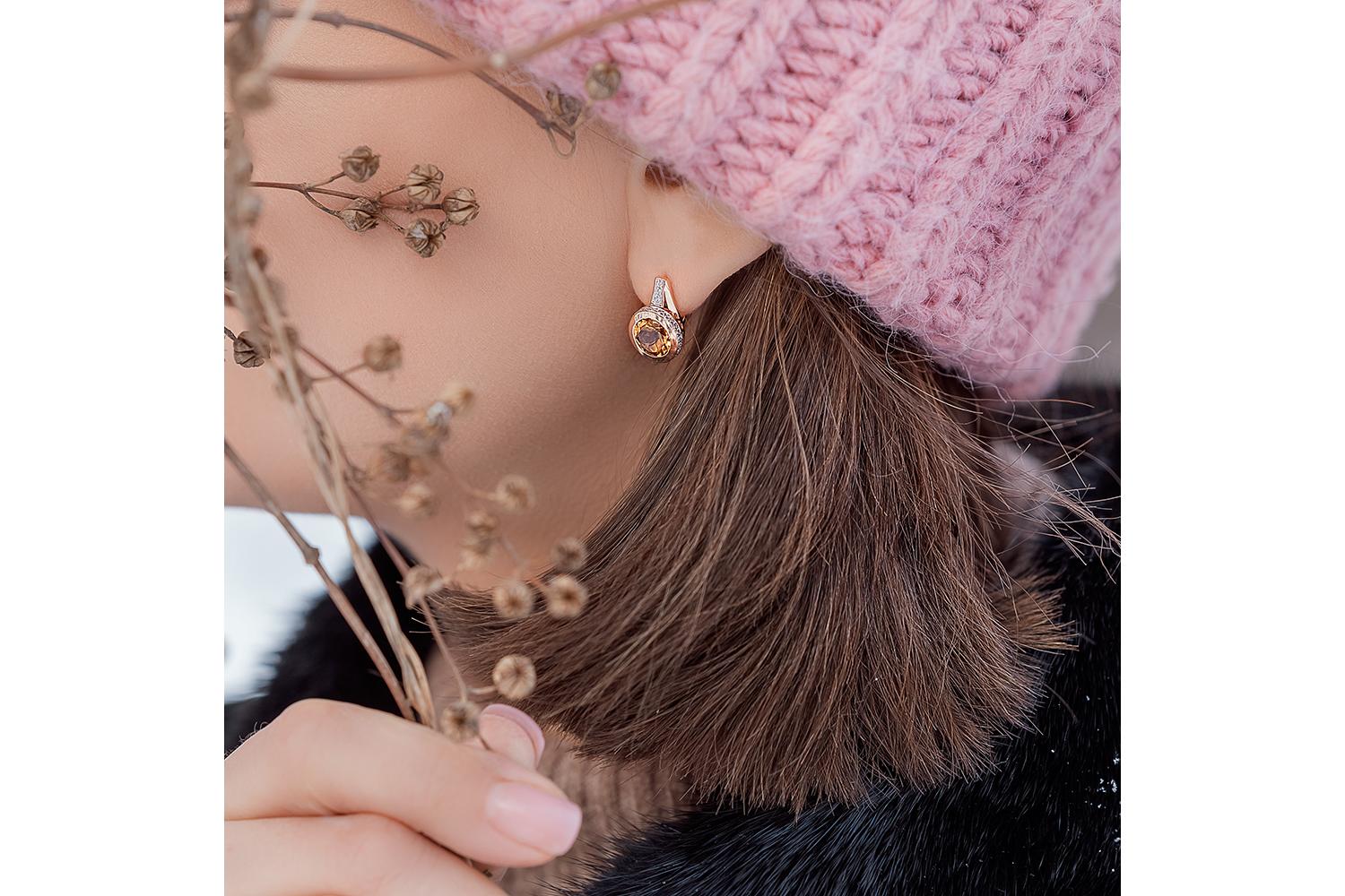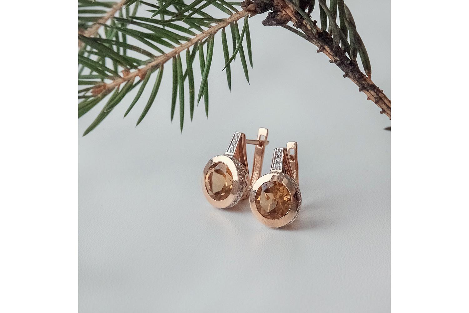 Мастера компании NEWGOLD, приложив всё свое мастерство и искусство, создали для Вас на нашем собственном производстве Серьги из красного золота с 2 цитринами и 58 фианитами.
