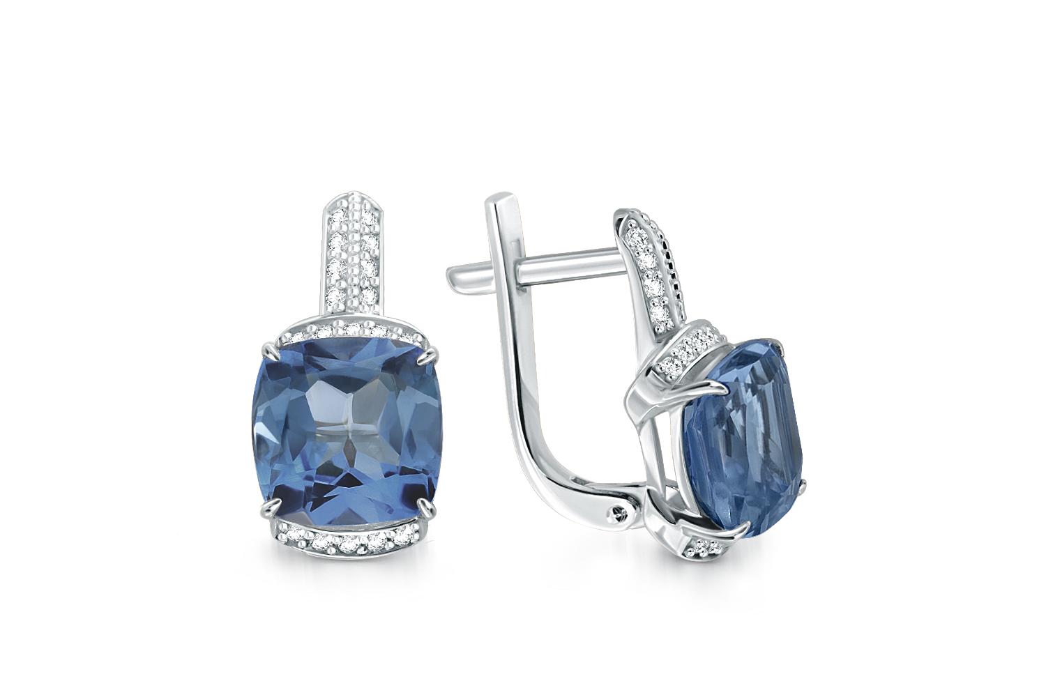 Мастера компании NEWGOLD, приложив всё свое мастерство и искусство, создали для Вас на нашем собственном производстве Серьги из белого золота с 2 ситаллами и 36 фианитами.