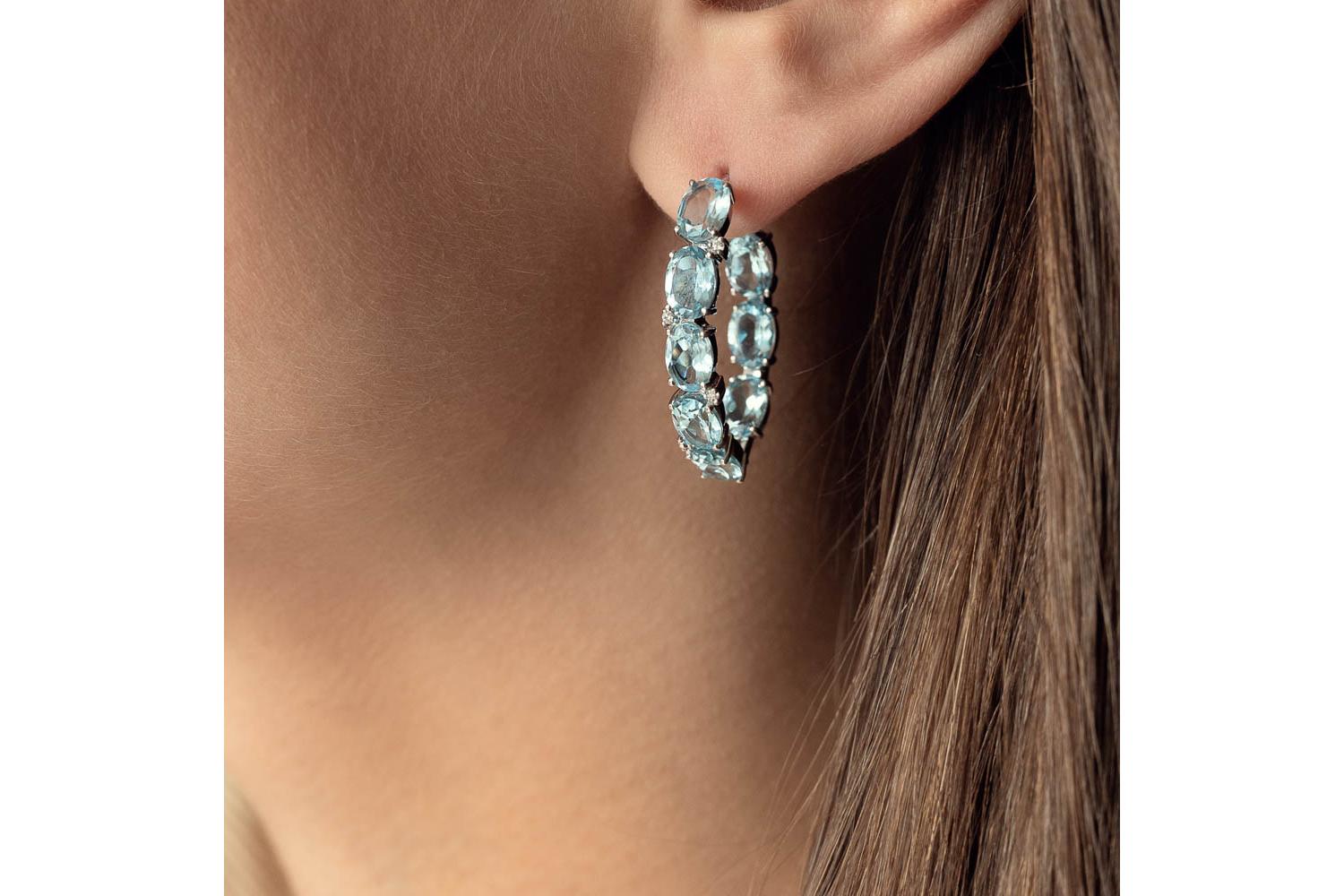 Мастера компании NEWGOLD, приложив всё свое мастерство и искусство, создали для Вас на нашем собственном производстве Серьги из белого золота с 16 топазами sky и 8 фианитами.