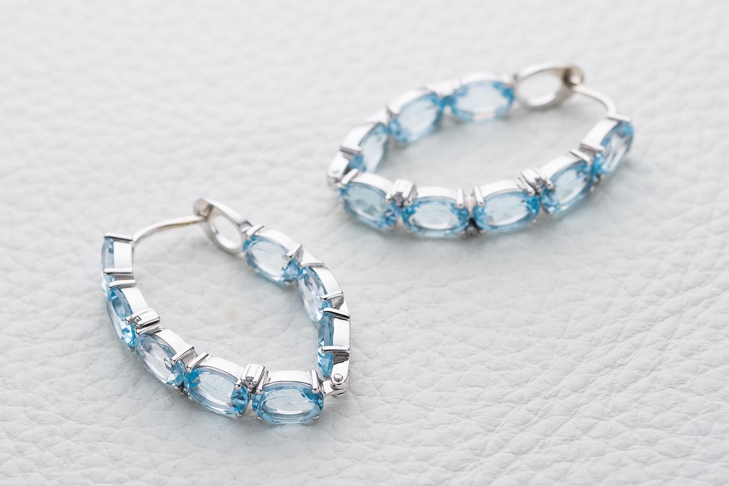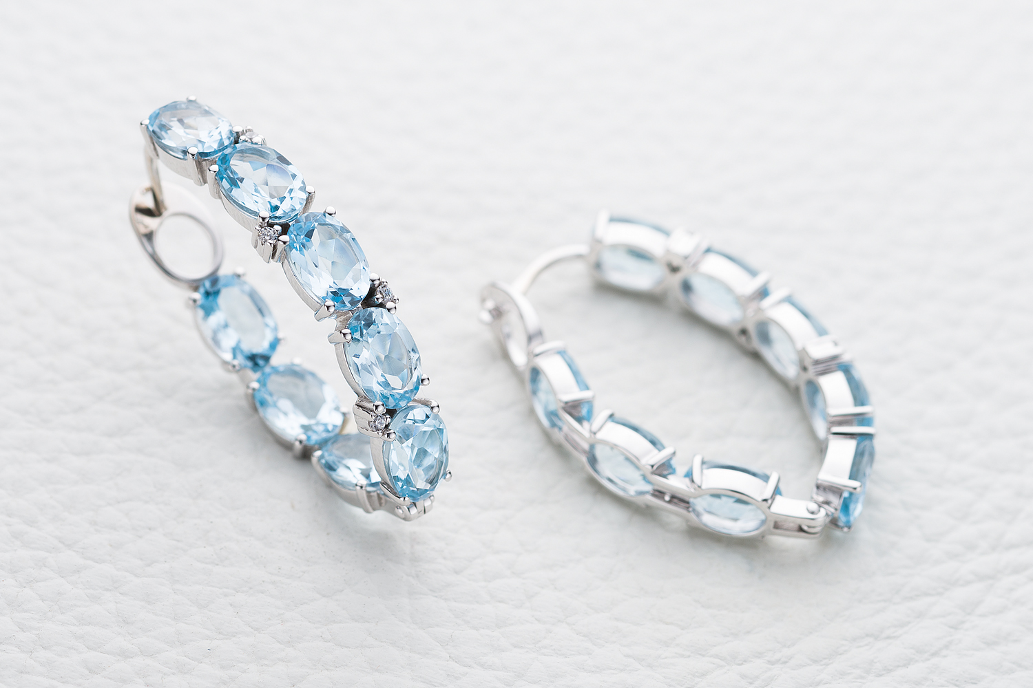 Топаз Sky натуральный, количество 16 шт., огранка овал, размер 7ˣ5 ; Фианит б/цв, количество 8 шт., огранка круг, размер 1,25 мм
