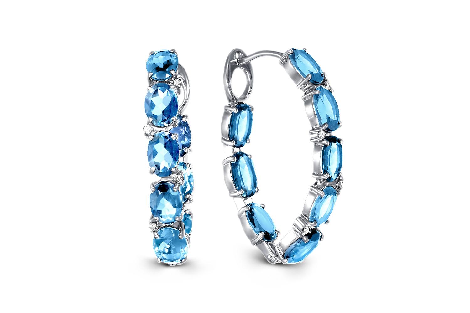 Мастера компании NEWGOLD, приложив всё свое мастерство и искусство, создали для Вас на нашем собственном производстве Серьги из белого золота с 16 топазами swiss и 8 фианитами.