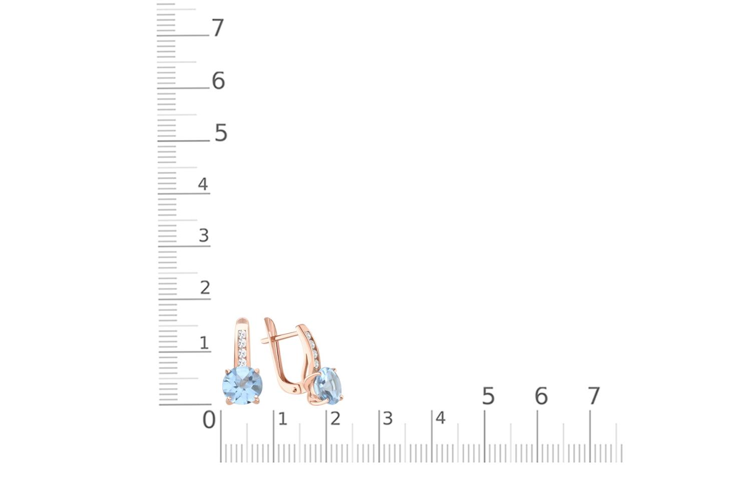 Металл: Золото, цвет: Красный , проба: 585. Вставки: Топаз Sky натуральный, количество 2 шт. , огранка круг-баффтоп, размер 8 мм ; Фианит б/цв, количество 8 шт. , огранка круг, размер 2 мм.