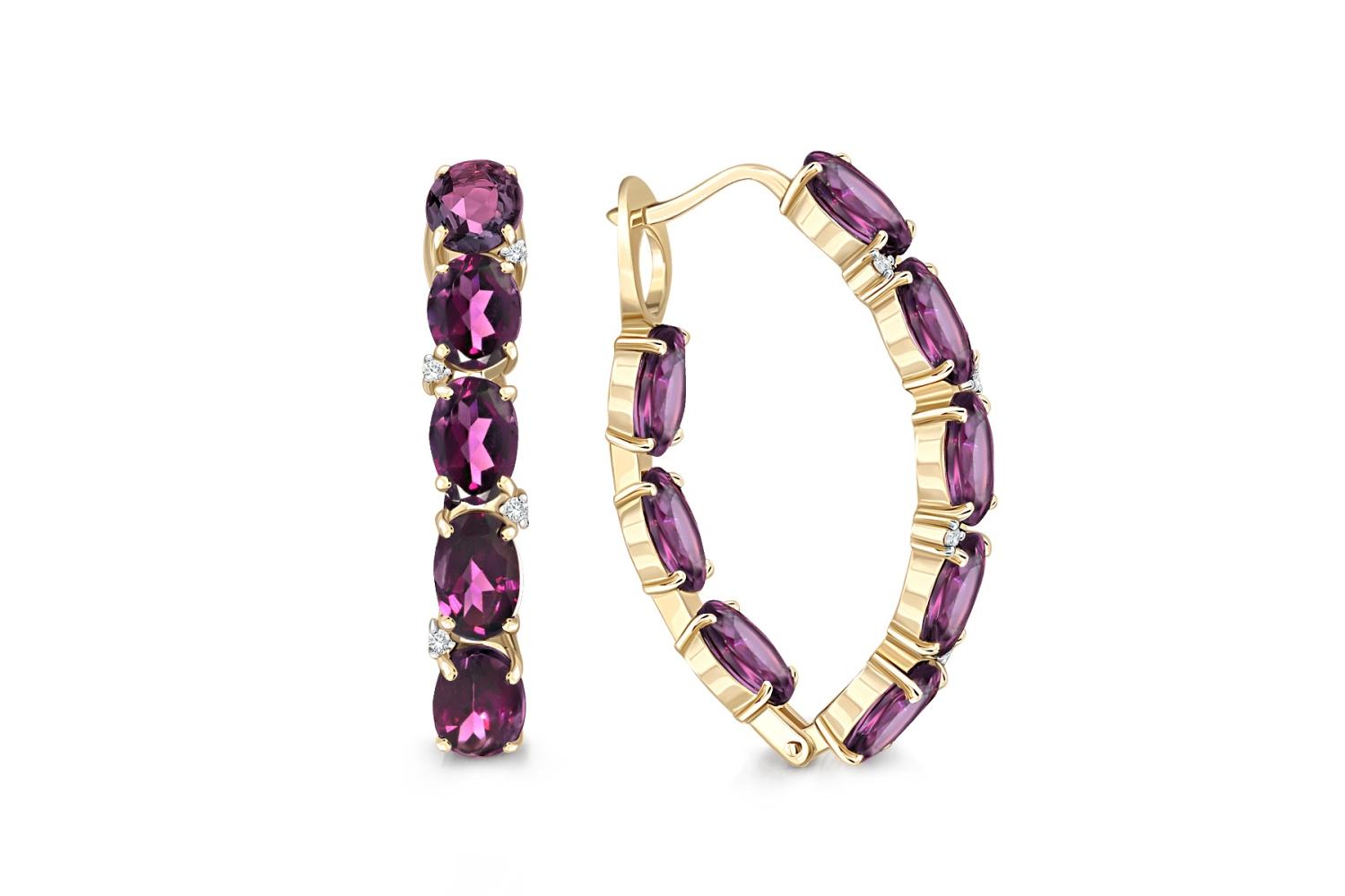 Мастера компании NEWGOLD, приложив всё свое мастерство и искусство, создали для Вас на нашем собственном производстве Серьги из жёлтого золота с 16 родолитами и 8 фианитами.